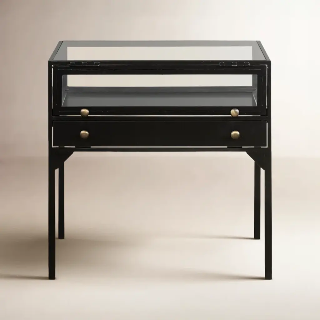 Perfect for displaying treasured trinkets, this shadow-box table also features an enclosed drawer for additional storage. For ordering assistance and more, please a href="https://www.anthropologie.com/help/contact-us#contact-us-section-2" target="_blank"contact us/a. For aesthetic advice and tips to help decorate your space, enjoy our complimentary a href="https://www.anthropologie.com/help/personal-styling-home-decor" target="_blank"home styling services/a. For more information on the materials and techniques of this piece, a href="https://www.anthropologie.com/help/material-care-guide" target="_blank"click here/a.