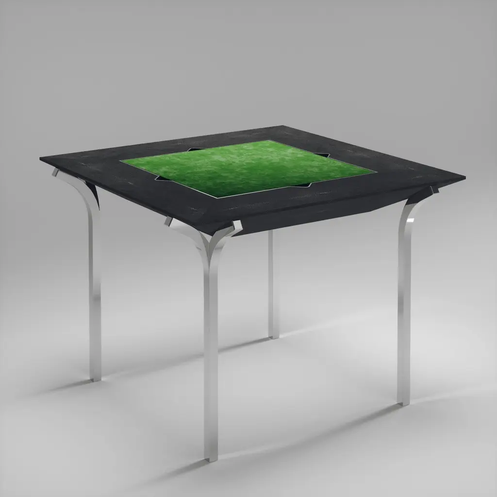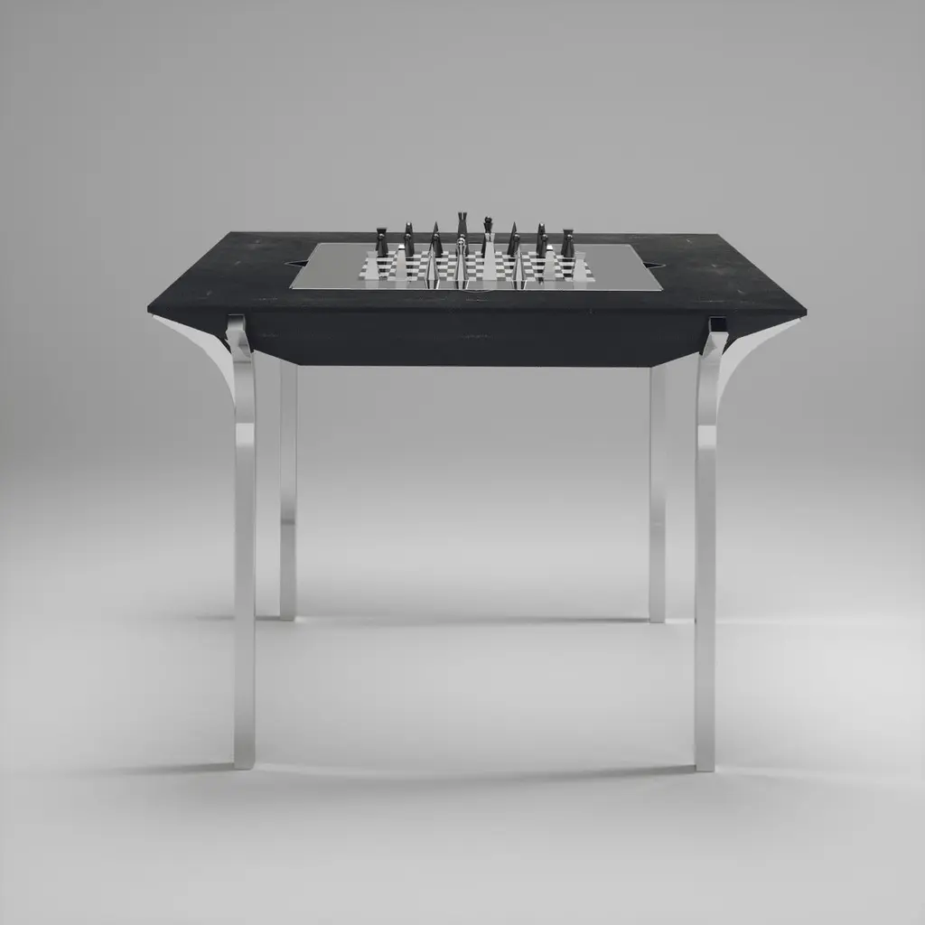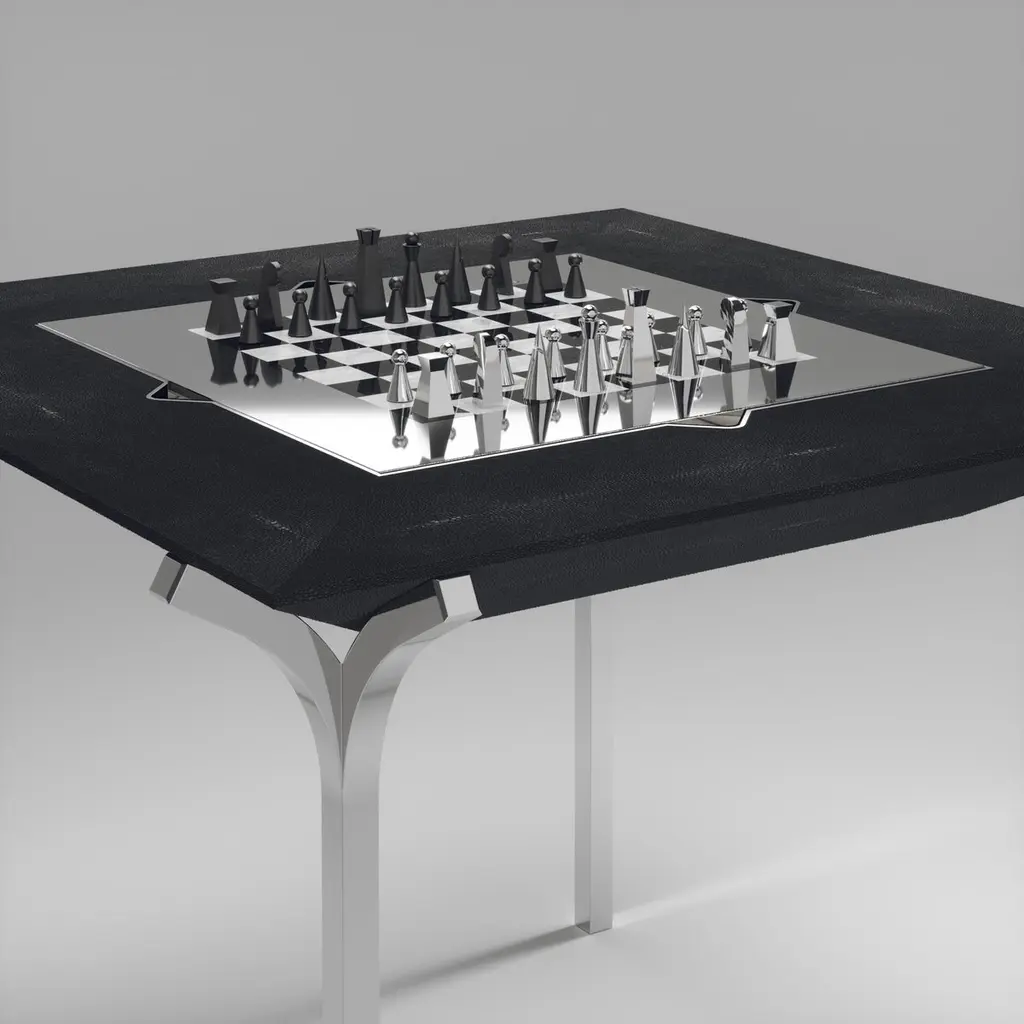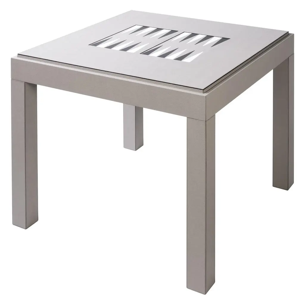 The Paris based label has distinguished themselves since their launch, with their iconic use of shagreen mixed with brass and other exotic materials. All furniture is handcrafted by skilled artisans, ultimately making each piece unique, designed in Paris and produced in the Philippines.The 4 in 1 Marcel Game table R&Y Augousti is a truly luxurious statement piece for your home. The clean lines of the overall piece in coal black shagreen, accentuated by the sculptural and sleek chrome finish polished stainless steel legs make it versatile for any space. This piece includes a complete game package set with interchangeable boards that stack on top of each other in the centre of the table; one for chess, one for backgammon, a green velvet bard to play your favourite card games and a plain shagreen board if one were to use it as a beautiful centre piece. The piece also includes a shagreen box lined with a velvet interior to store your chess and backgammon pieces. All the above are stored and stacked in the table with the last board piece being flushed in line with the tabletop. Four triangle grooves are on the side of the board's central location on the tabletop to facilitate changing and removing each board. Available in other finishes and as a part of a game table series, see images at end of slide.The finish of the shagreen is authentic as it is hand-dyed by our artisans. The dimensions of this piece are 100 x 100 x 75 cmAll R&Y Augousti pieces are handmade by artisans, ultimately making each piece unique. Wipe clean with soft dry cloth.Acclaimed design duo Ria & Yiouri Augousti have established themselves since the 1990s as pioneers of modern-vintage style through their luxurious Art Deco inspired collections.The Paris based label has distinguished themselves since their launch, with their iconic use of shagreen mixed with brass and other exotic materials. All furniture is handcrafted by skilled artisans, ultimately making each piece unique. All shagreen-covered items should be kept out of direct sunlight, color variants may occur on the stingray and other exotic finishes, but this showcases the Parisian label's commitment to creating authentic luxurious products using natural components.