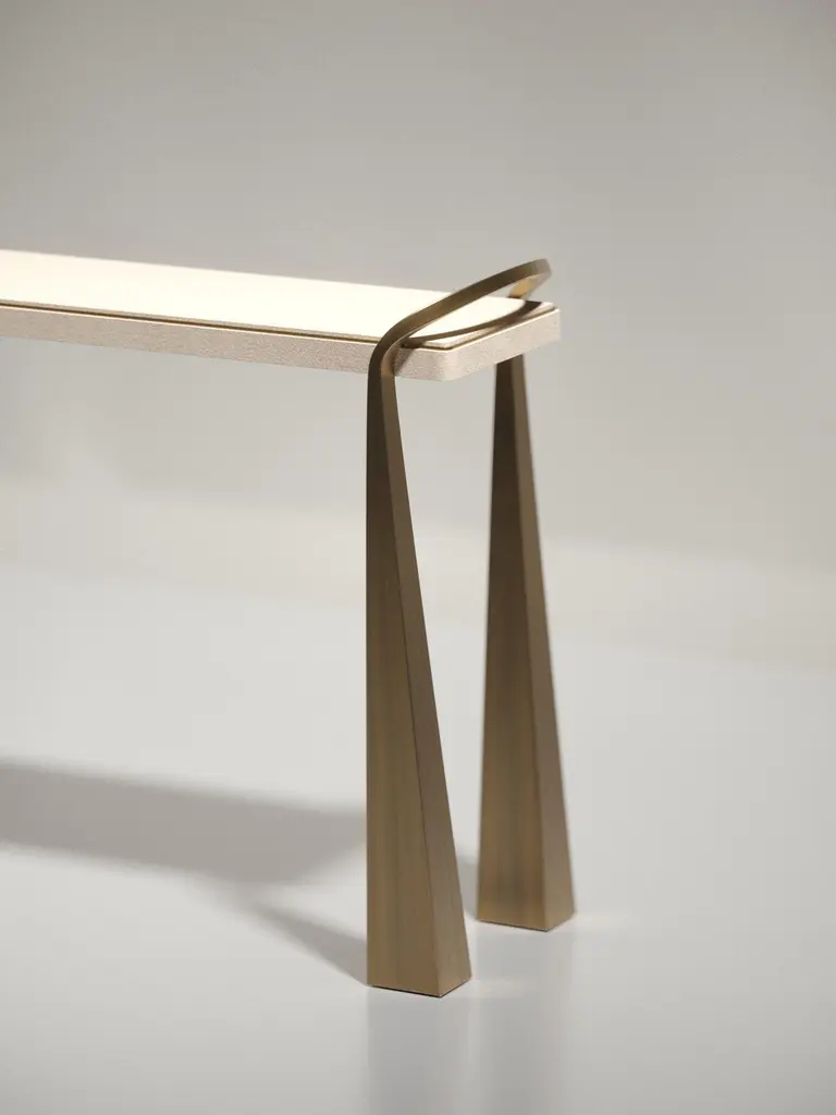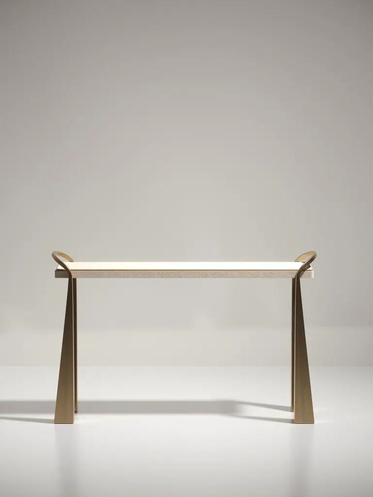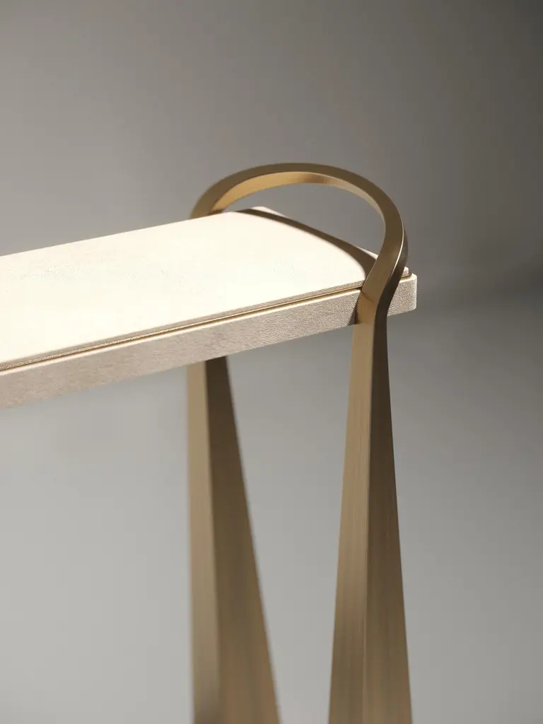 Shagreen Inlaid Console Table With Sculptural Brass Legs By R&y Augousti