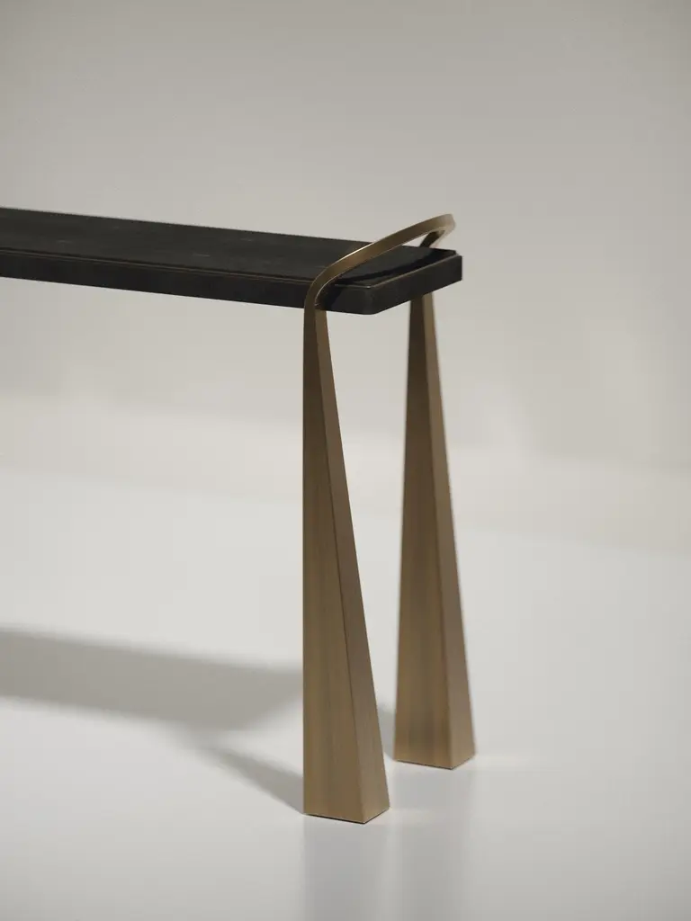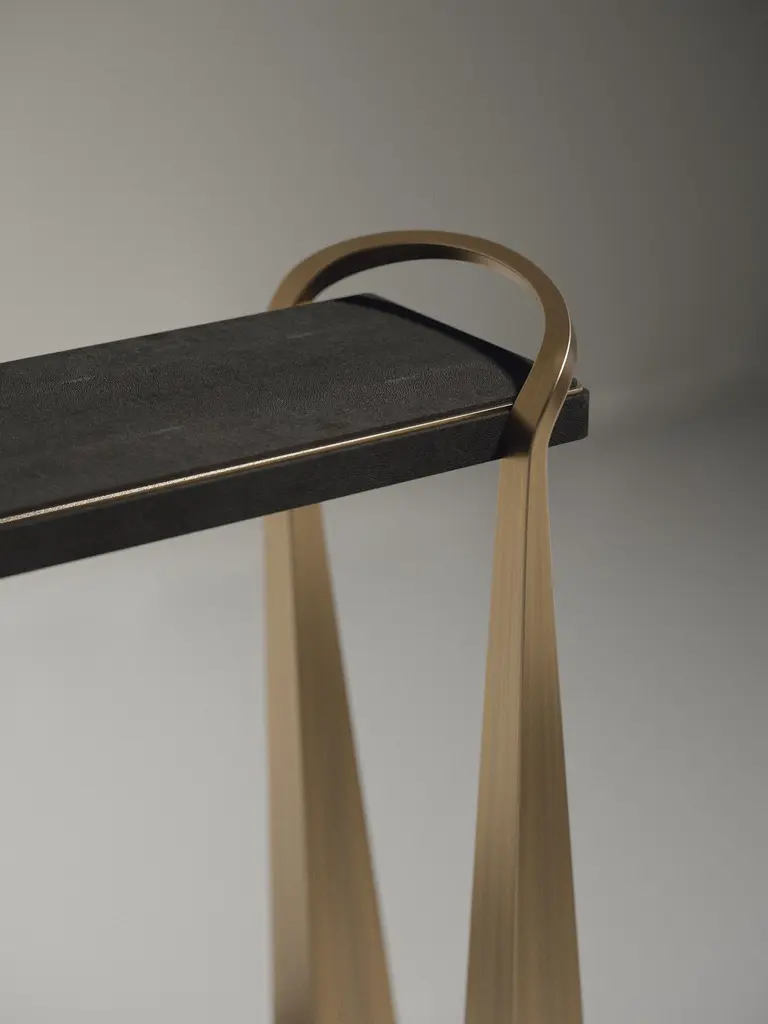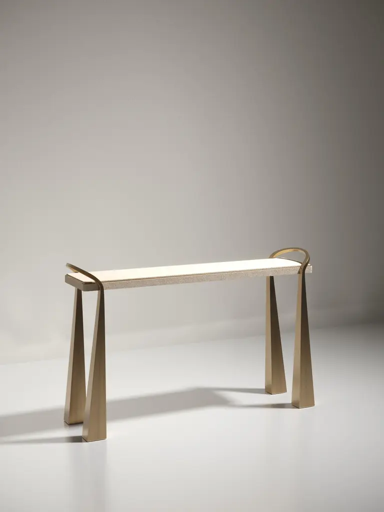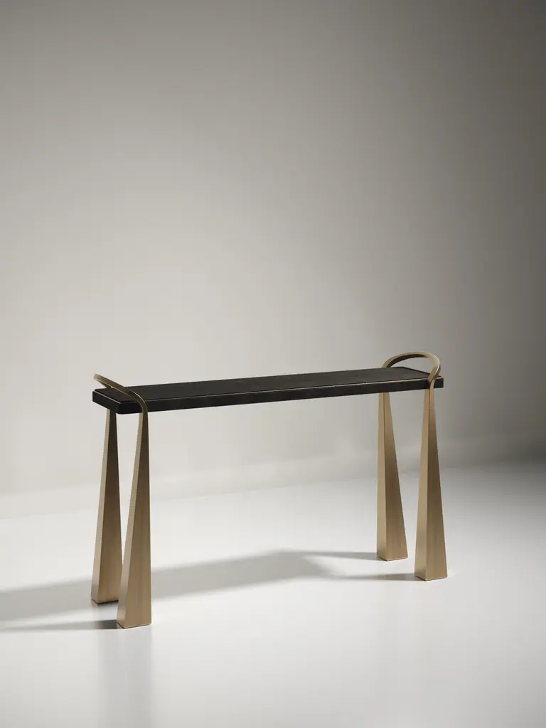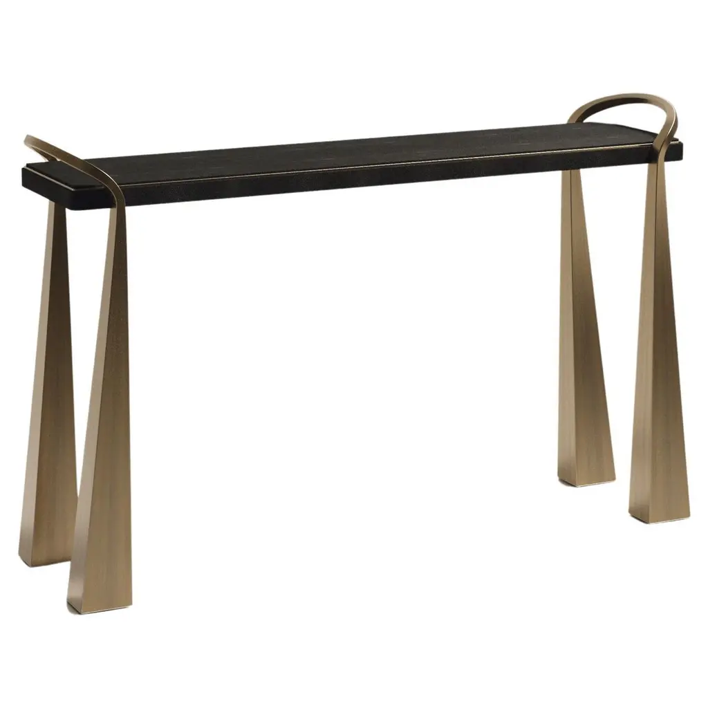 Shagreen Inlaid Console Table With Sculptural Brass Legs By R&y Augousti