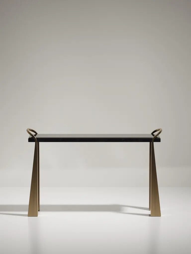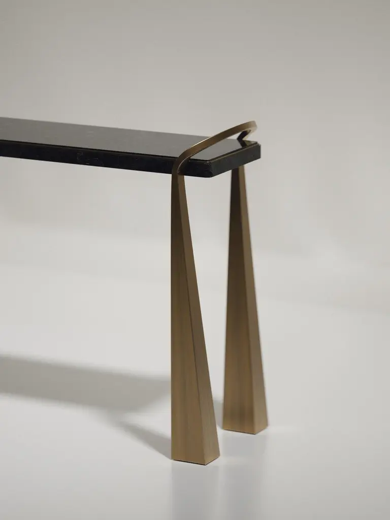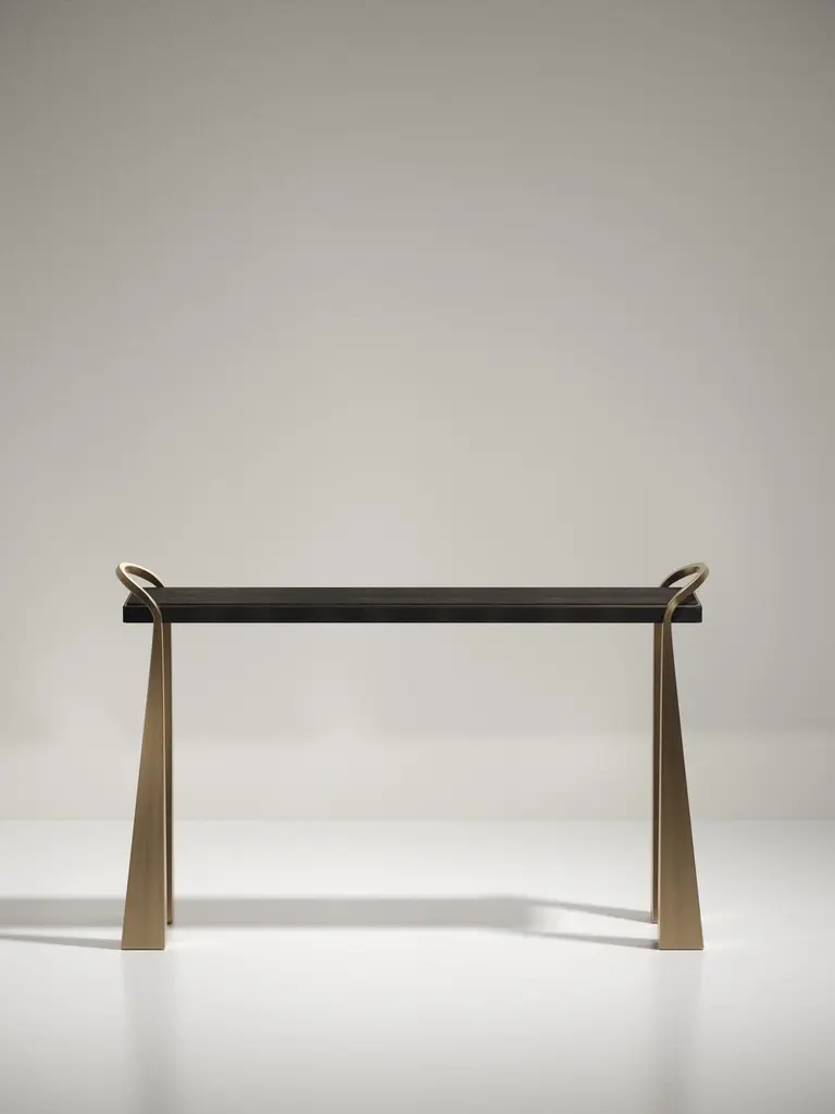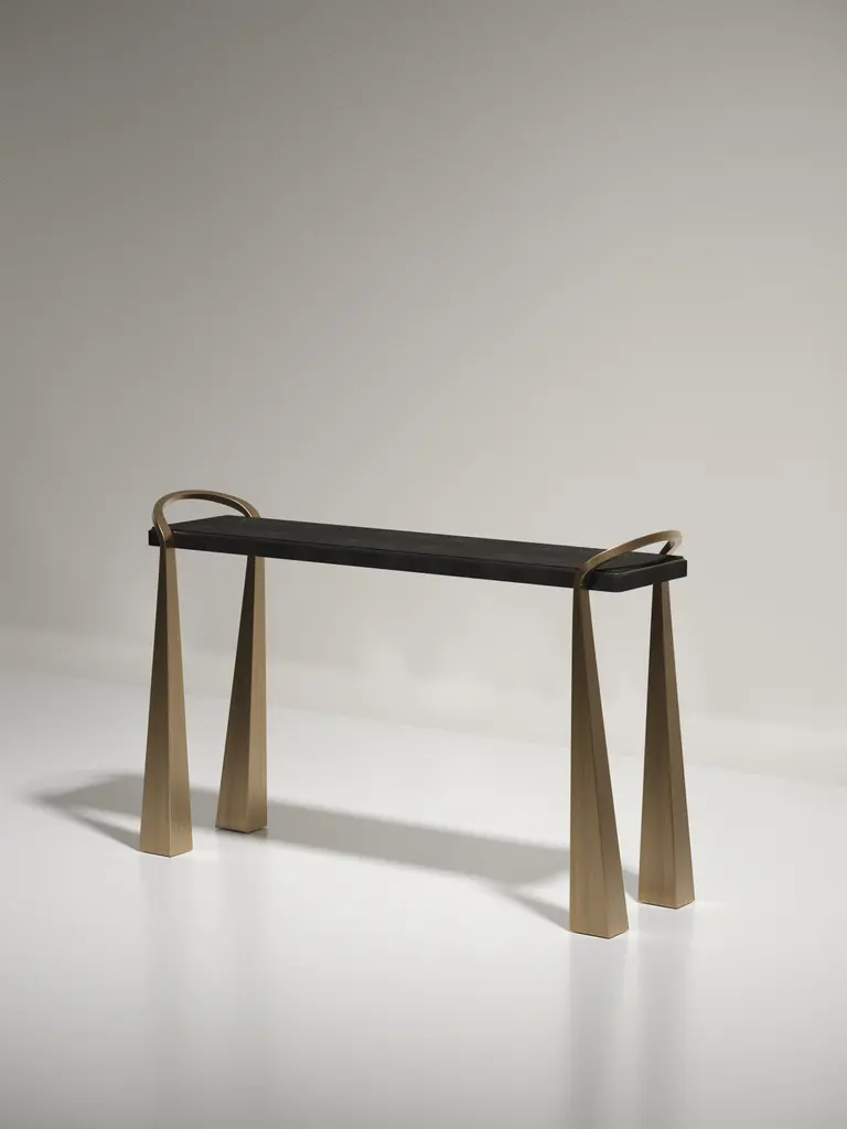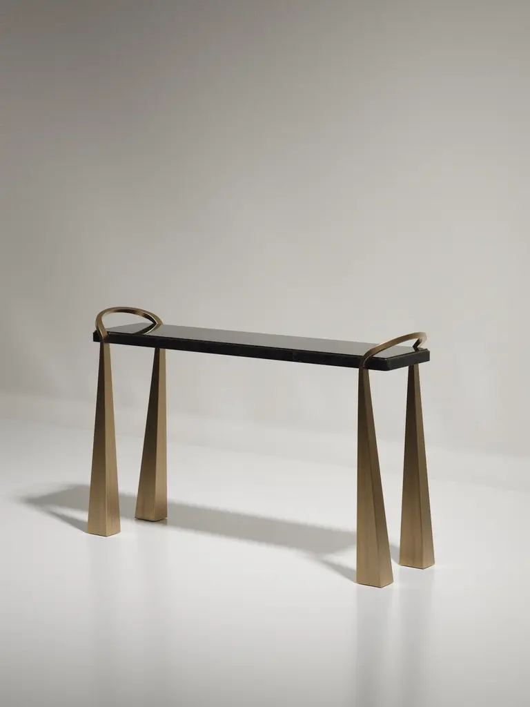 Shagreen Inlaid Console Table With Sculptural Brass Legs By R&y Augousti