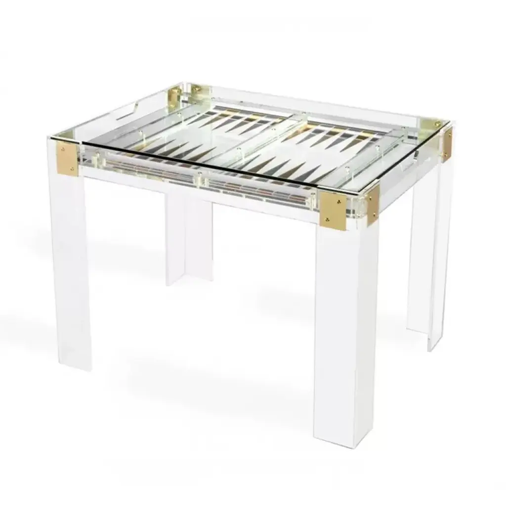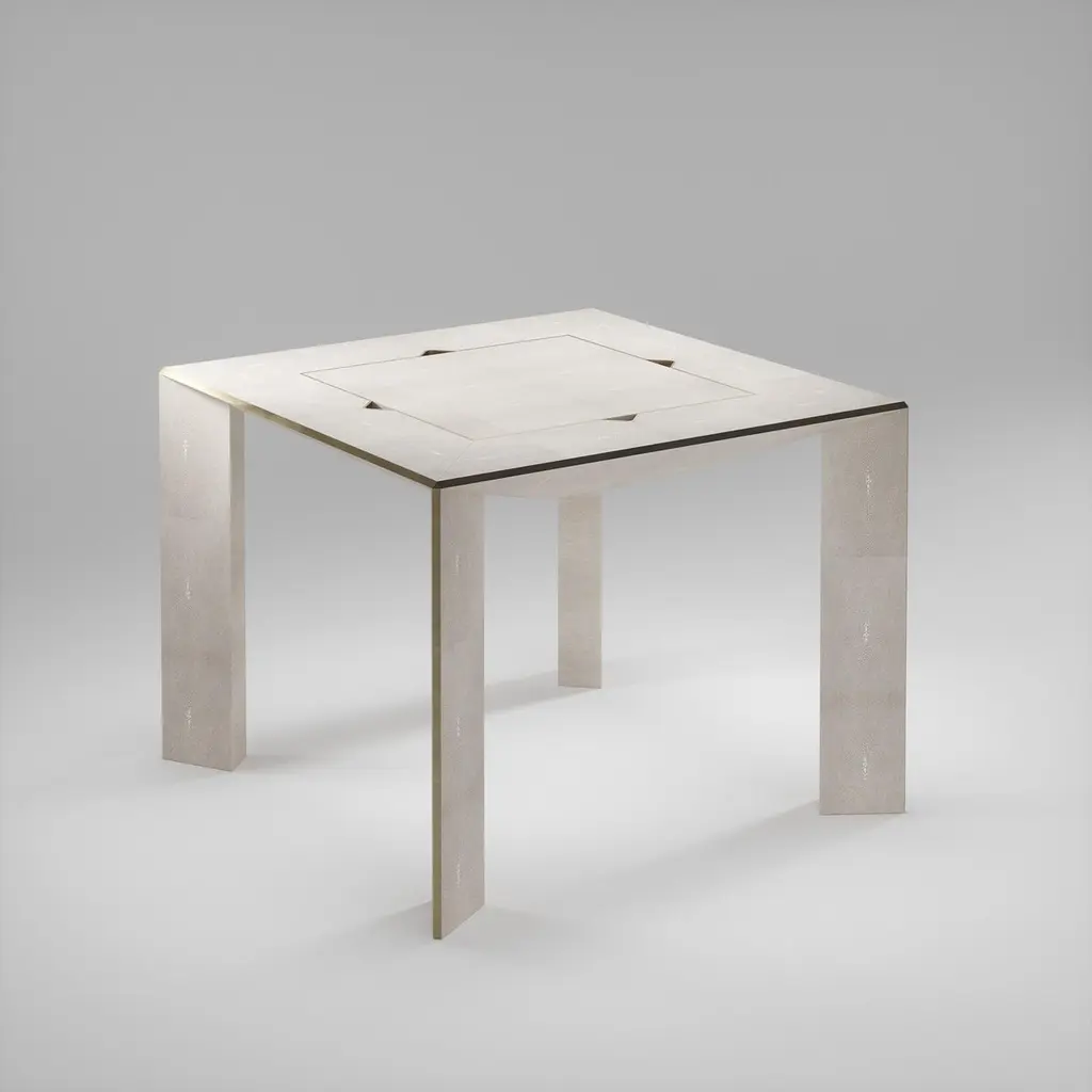 The Paris based label has distinguished themselves since their launch, with their iconic use of shagreen mixed with brass and other exotic materials. All furniture is handcrafted by skilled artisans, ultimately making each piece unique, designed in Paris and produced in the Philippines.The 4 in 1 Parsons game table R&Y Augousti is a truly luxurious statement piece for your home. The clean lines of the overall piece in cream shagreen, accentuated by the sleek bronze-patina brass details on the legs make it versatile for any space. This piece includes a complete game package set with interchangeable boards that stack on top of each other in the centre of the table; one for chess, one for backgammon, a green velvet bard to play your favourite card games and a plain shagreen board if one were to use it as a beautiful centre piece. The piece also includes a shagreen box lined with a velvet interior to store your chess and backgammon pieces. All the above are stored and stacked in the table with the last board piece being flushed in line with the tabletop. Four triangle grooves are on the side of the board's central location on the tabletop to facilitate changing and removing each board. Available in other finishes and as a part of a game table series, see images at end of slide.The finish of the shagreen is authentic as it is hand-dyed by our artisans. The dimensions of this piece are 100 x 100 x 75 cm.All R&Y Augousti pieces are handmade by artisans, ultimately making each piece unique. Wipe clean with soft dry cloth.Acclaimed design duo Ria & Yiouri Augousti have established themselves since the 1990s as pioneers of modern-vintage style through their luxurious Art Deco inspired collections.The Paris based label has distinguished themselves since their launch, with their iconic use of shagreen mixed with brass and other exotic materials. All furniture is handcrafted by skilled artisans, ultimately making each piece unique. All shagreen-covered items should be kept out of direct sunlight, color variants may occur on the stingray and other exotic finishes, but this showcases the Parisian label's commitment to creating authentic luxurious products using natural components.