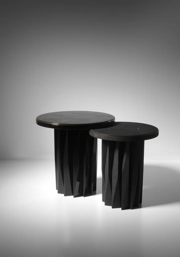 Shagreen Nesting Side Tables With Geometric Fluted Details By R&y Augousti