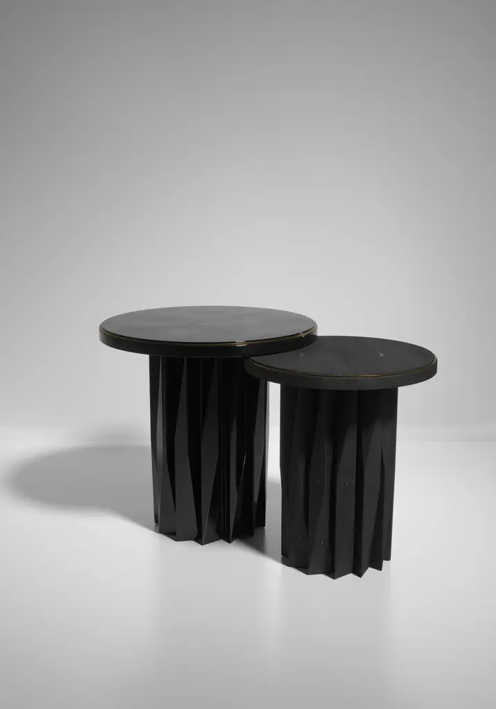 Shagreen Nesting Side Tables With Geometric Fluted Details By R&y Augousti