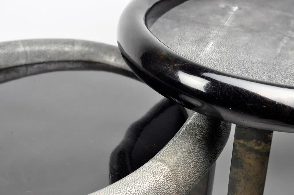 Shagreen Nesting Tables With Shell Marquetry And Parchment Feet By Ginger Brown