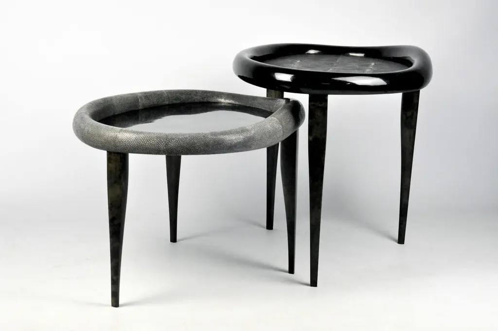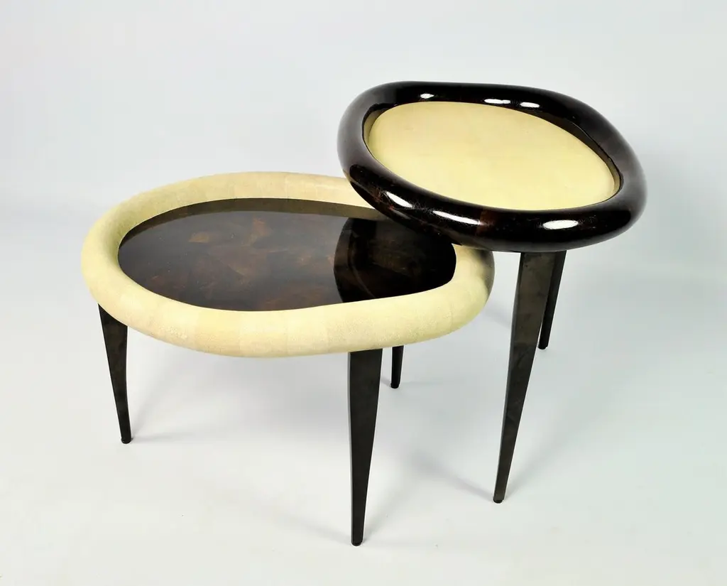 Shagreen Nesting Tables With Shell Marquetry And Parchment Feet By Ginger Brown