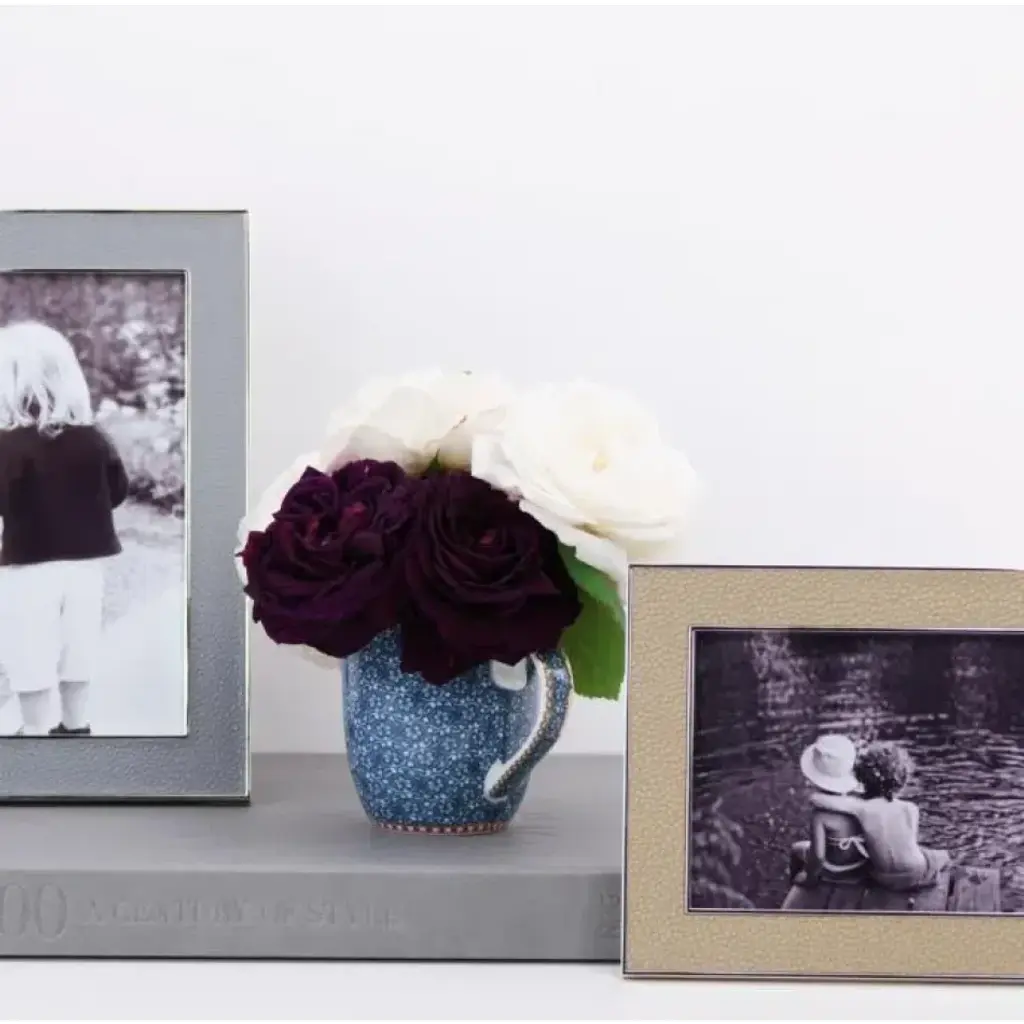 Our sand shagreen enamel square alarm clock beautifully compliments our enamel frames, complete with an alarm function, this clock is ideal for a bedside table or desk. Backed in black velvet with a silver clock movement cover.