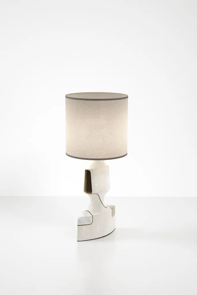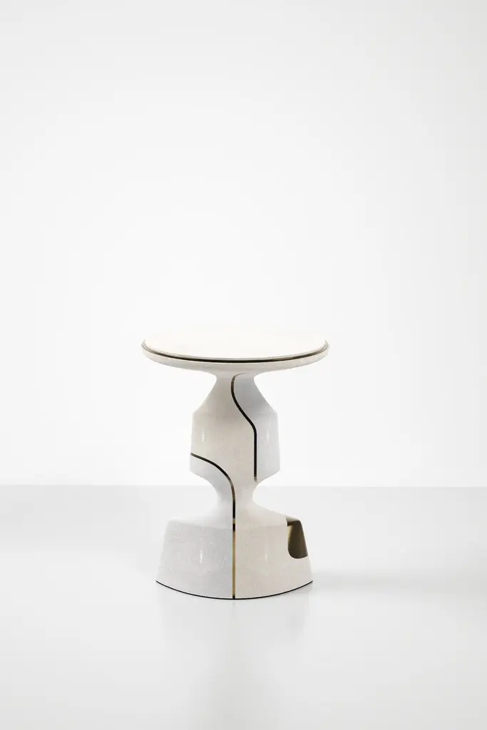 The Paris based label has distinguished themselves since their launch, with their iconic use of shagreen mixed with brass and other exotic materials. All furniture is handcrafted by skilled artisans, ultimately making each piece unique, designed in Paris and produced in the Philippines.The Artemis Sculptural Floor Lamp is a graphic piece that adds a statement to any space. The bold pattern is inlaid in a mixture of cream & white shagreen, kabibe shell and bronze-patina brass. This sculptural lamp is also available as a side table, table lamp and vases (see images at end of slide) . Custom finishing and sizing available on request.The dimensions of this piece are 64.5 x 25.3 x 180 cmAll R & Y Augousti pieces are handmade by artisans, ultimately making each piece unique.Wipe clean with soft dry cloth.Acclaimed design duo Ria & Yiouri Augousti have established themselves since the 1990s as pioneers of modern-vintage style through their luxurious Art Deco inspired collections.The Paris based label has distinguished themselves since their launch, with their iconic use of shagreen mixed with brass and other exotic materials. All furniture is handcrafted by skilled artisans, ultimately making each piece unique. All shagreen-covered items should be kept out of direct sunlight, color variants may occur on the stingray and other exotic finishes, but this showcases the Parisian label's commitment to creating authentic luxurious products using natural components.