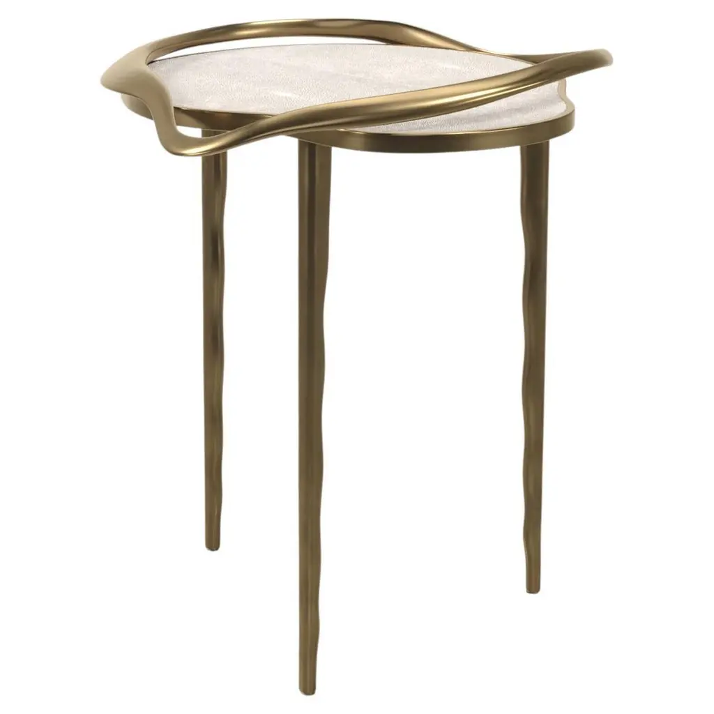 Shagreen Side Table With A Sculptural Bronze Patina Brass Frame By Kifu Paris