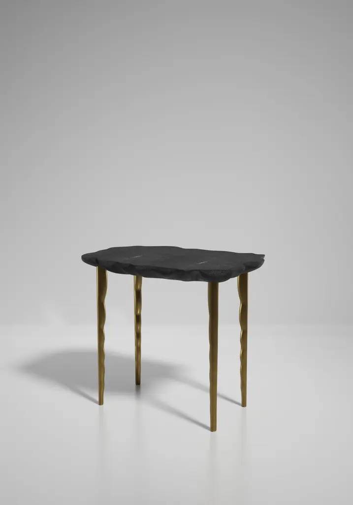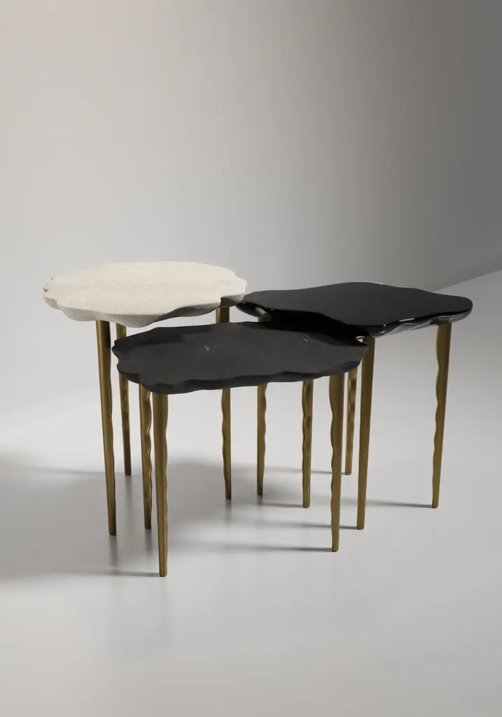 The Paris based label has distinguished themselves since their launch, with their iconic use of shagreen mixed with brass and other exotic materials. All furniture is handcrafted by skilled artisans, ultimately making each piece unique, designed in Paris and produced in the Philippines.The Nimbus Cloud Side Table in Black Shagreen by R&Y Augousti is a whimsical and elegant interpretation of floating clouds. The amorphous shaped top comes in two other organic forms in this series; Nimbus & Cirrus. Together all 3 can become a nesting set, playing into the inspiration of organic shapes of clouds in the sky. The tabletop sits above 4 melting shaped bronze patina brass, emulating the idea of thunder coming from the clouds. This table comes in other finishes as well.The dimensions of this piece are :Nimbus 58 x 40 x 50 cmStratus 60 x 40 x 55 cmCirrus 50 x 50 x 62 cmAll R&Y Augousti pieces are handmade by artisans, ultimately making each piece unique.Wipe clean with soft dry cloth.All R&Y Augousti pieces are handmade by artisans, ultimately making each piece unique.Wipe clean with soft dry cloth.Acclaimed design duo Ria & Yiouri Augousti have established themselves since the 1990s as pioneers of modern-vintage style through their luxurious Art Deco inspired collections.The Paris based label has distinguished themselves since their launch, with their iconic use of shagreen mixed with brass and other exotic materials. All furniture is handcrafted by skilled artisans, ultimately making each piece unique.All shagreen-covered items should be kept out of direct sunlight, color variants may occur on the stingray and other exotic finishes, but this showcases the Parisian label's commitment to creating authentic luxurious products using natural components.