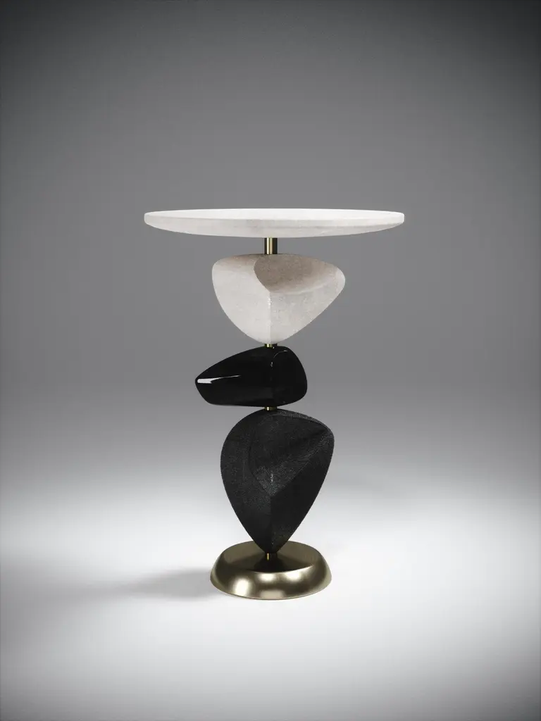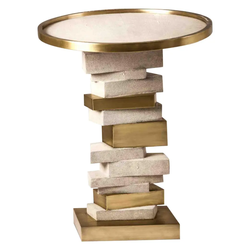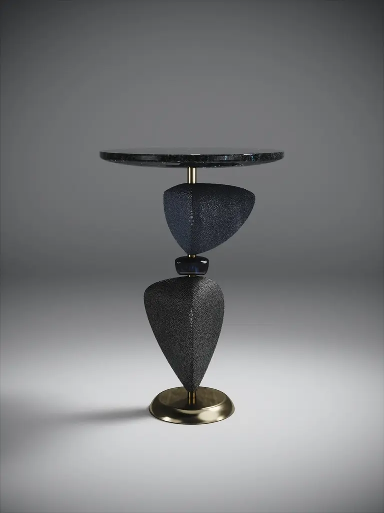 Shagreen Side Table With Mobile Sculptural Parts And Brass Accents By Kifu Paris