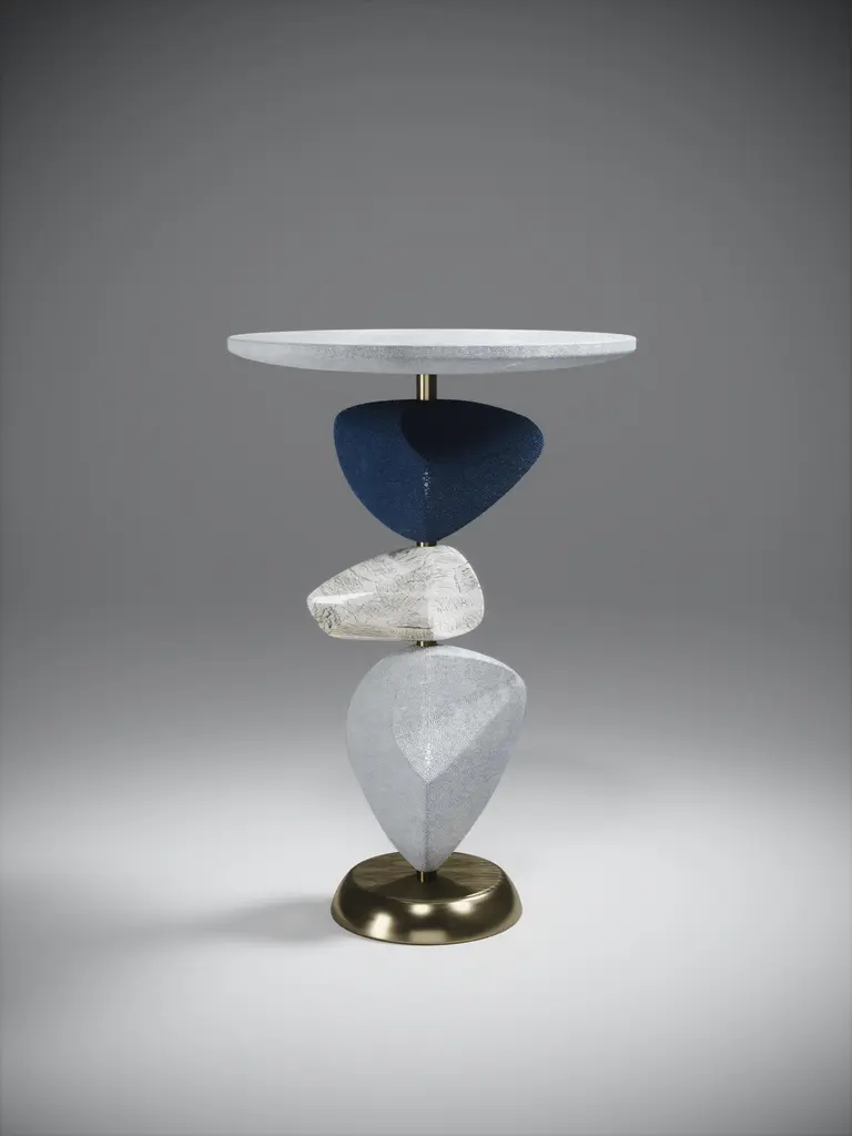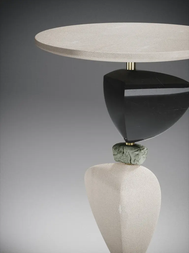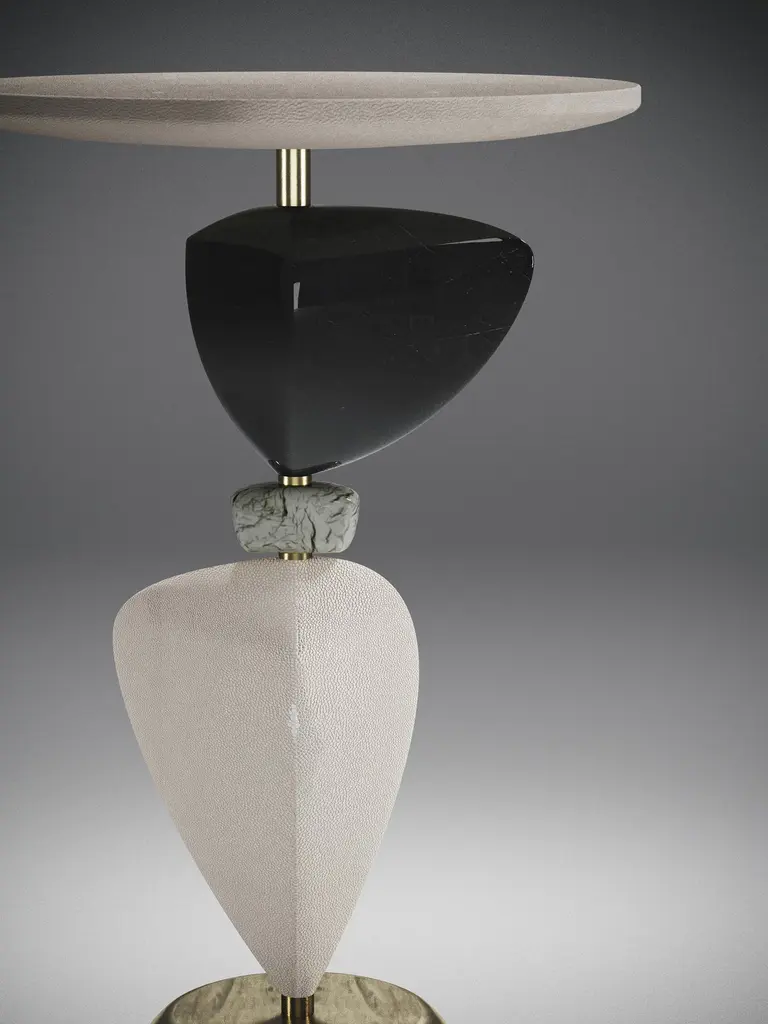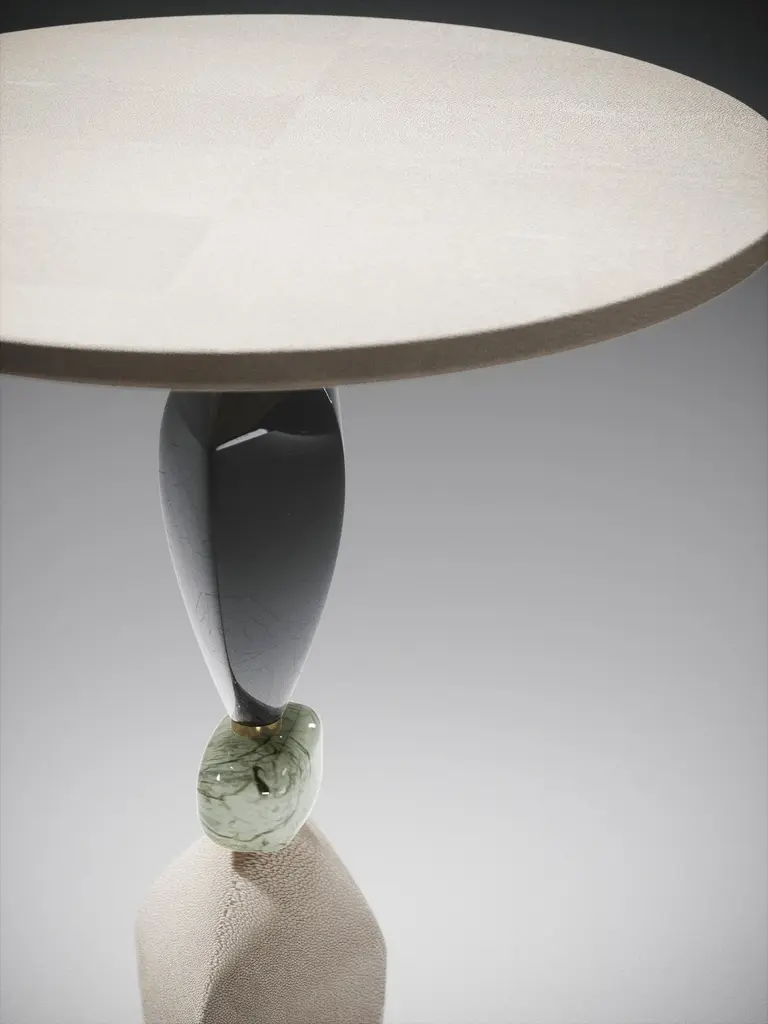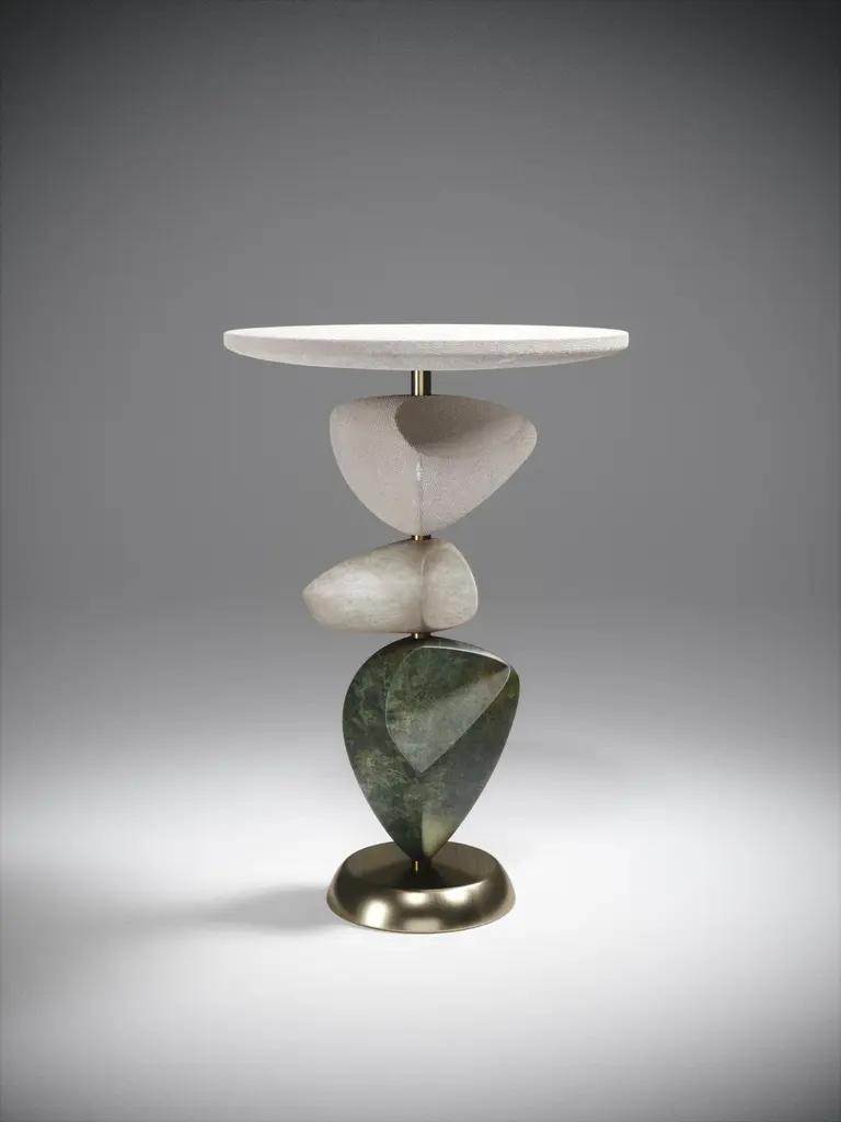 Shagreen Side Table With Mobile Sculptural Parts And Brass Accents By Kifu Paris