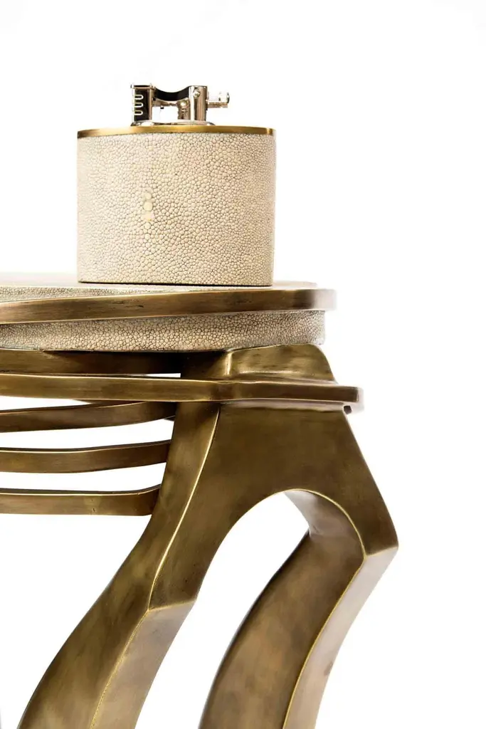 Shagreen Side Table With Sculptural Bronze-Patina Brass Details By Kifu Paris