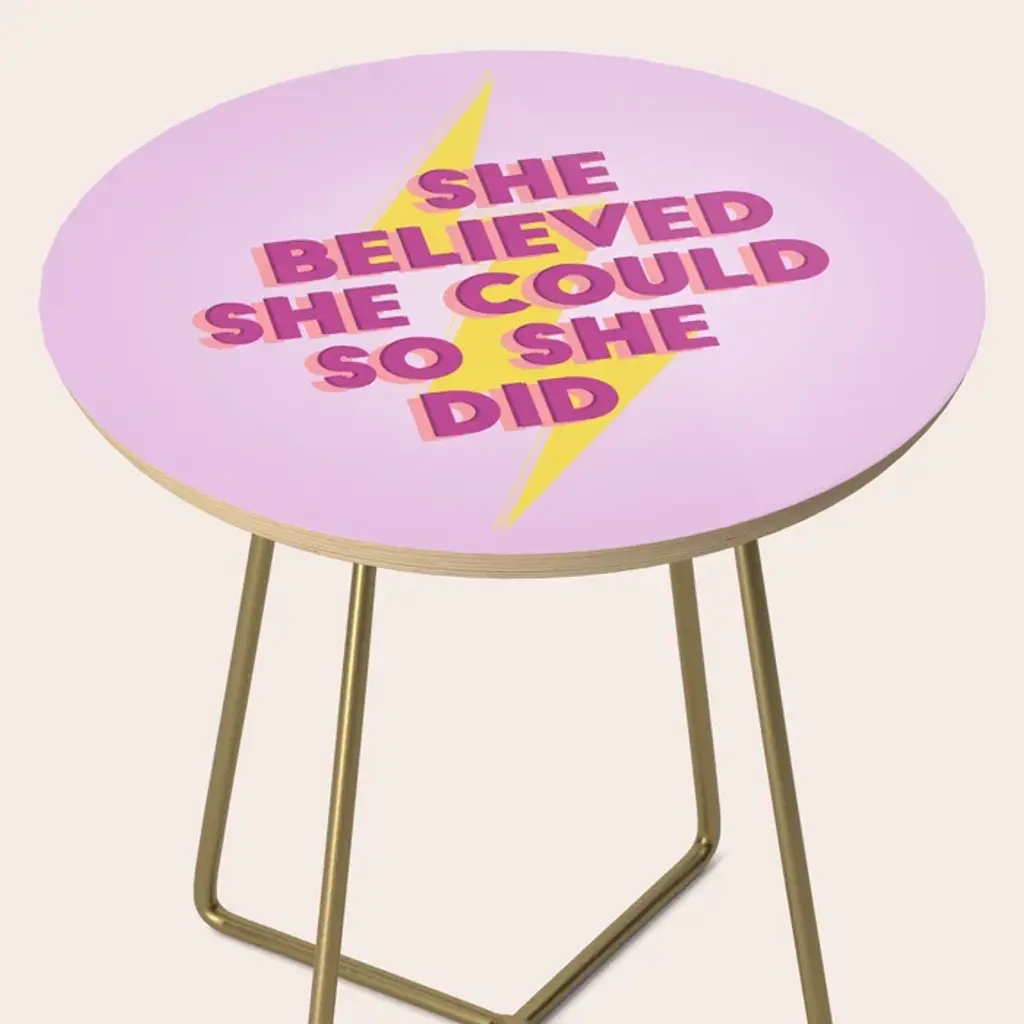 From sideshow to show-stopper, our side tables will be a stunning modern accent to your space. Selecting from our wide array of artist's designs printed with a satin finish on birch wood, you’ll take any room from zero to a hundred. Available in a square or round table top, and black or gold leg colors.Square: 19" x 19" x 19" (H)Round: 19" (diameter) x 19" (H)Baltic birch table top with beveled edgeHigh quality print with satin finishSteel legs available in black or goldAssembly requiredFor more info click here.SHIPPING: Items are made to order and typically ship within 3-4 business days. Click here for more information about delivery options.Furniture sales are final. Click here for more information on returns.