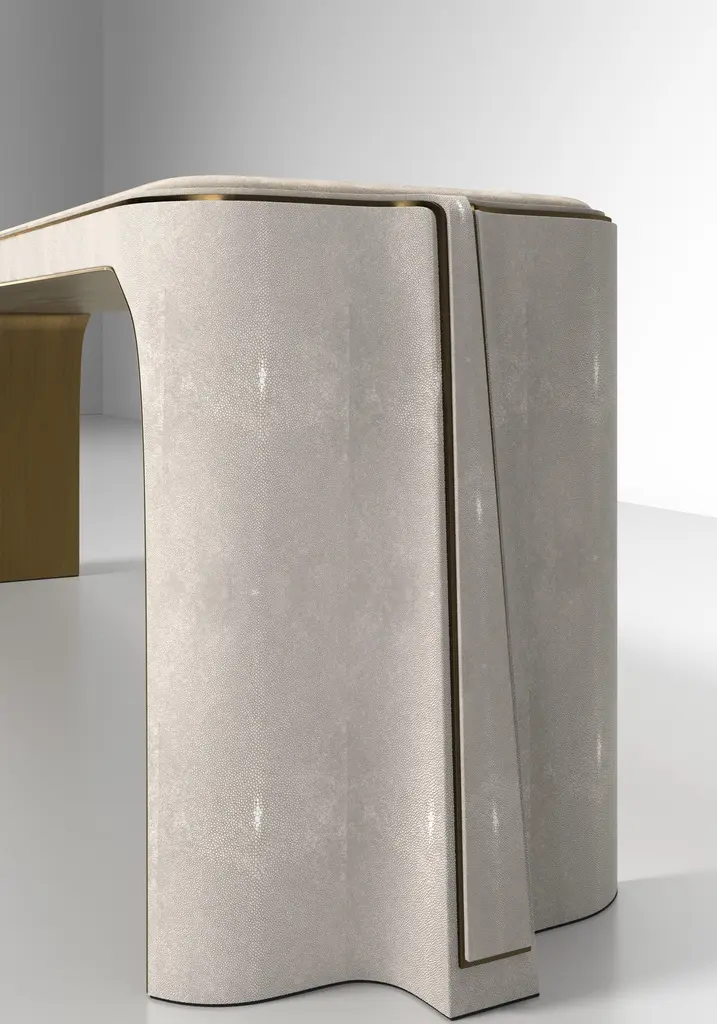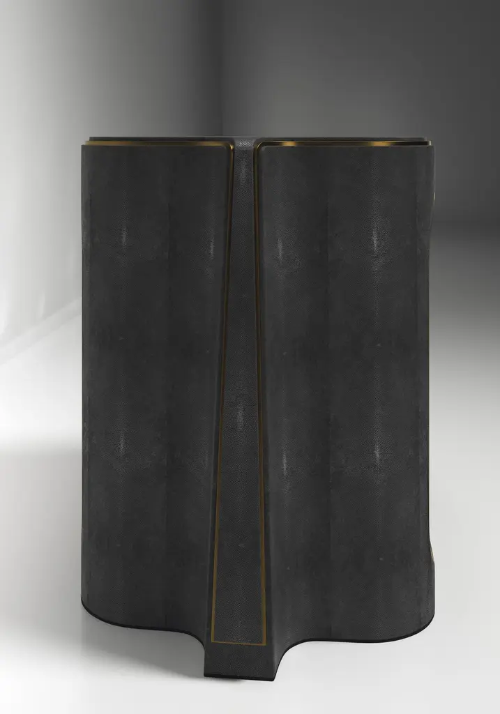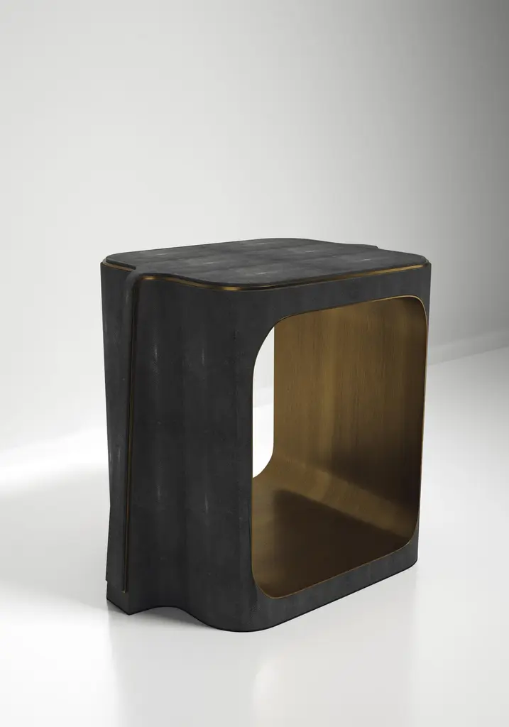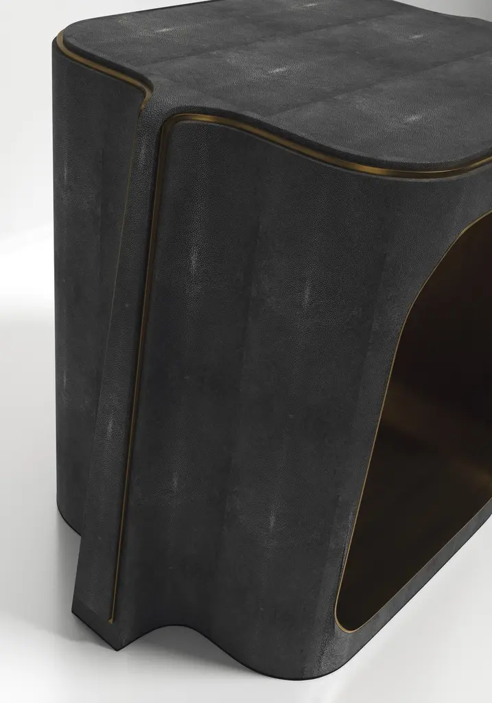 The Paris based label has distinguished themselves since their launch, with their iconic use of shagreen mixed with brass and other exotic materials. All furniture is handcrafted by skilled artisans, ultimately making each piece unique, designed in Paris and produced in the Philippines.The Axis Side Table is an effortless piece that embodies sophistication along with subtle graphic detailing. Inlaid in black pen shell, the tapered frame creates a geometric aesthetic within the timeless design of the piece. Available as a stool, bedside table, bench and console. Custom sizing and finishing available on request. The dimensions of this piece are 68.5 x 40 x 60 cmAll R & Y Augousti pieces are handmade by artisans, ultimately making each piece unique.Wipe clean with soft dry cloth.Acclaimed design duo Ria & Yiouri Augousti have established themselves since the 1990s as pioneers of modern-vintage style through their luxurious Art Deco inspired collections.The Paris based label has distinguished themselves since their launch, with their iconic use of shagreen mixed with brass and other exotic materials. All furniture is handcrafted by skilled artisans, ultimately making each piece unique. All shagreen-covered items should be kept out of direct sunlight, color variants may occur on the stingray and other exotic finishes, but this showcases the Parisian label's commitment to creating authentic luxurious products using natural components.