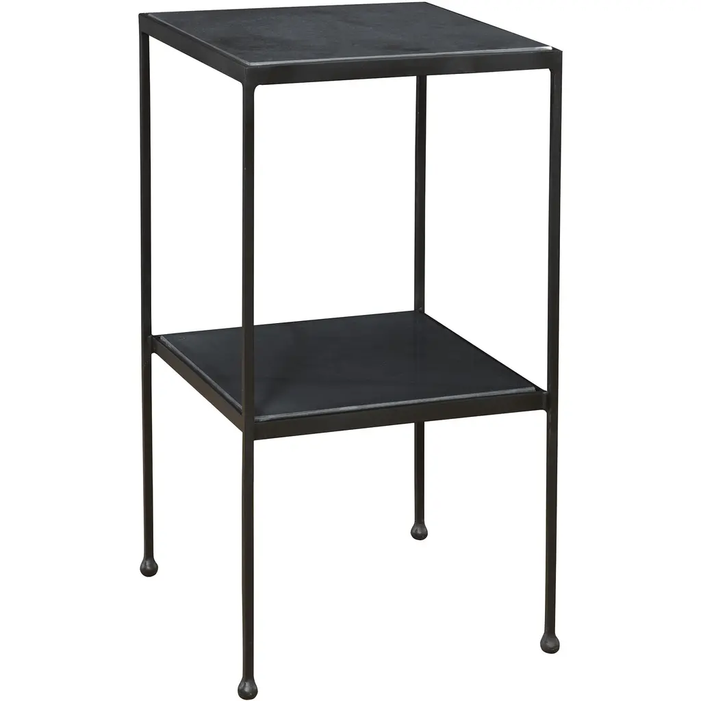 Constructed From Solid Iron, This Accent Table Is Finished In A Smooth Matte Black With Double Black Honed Marble Shelves.