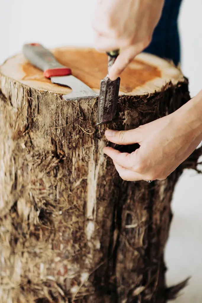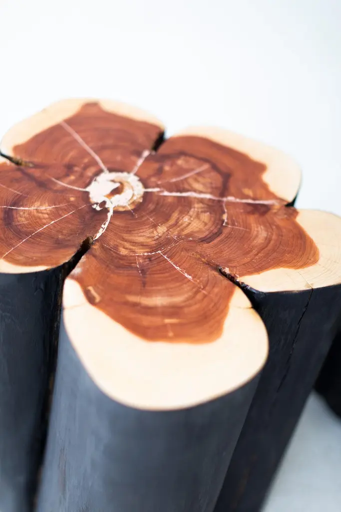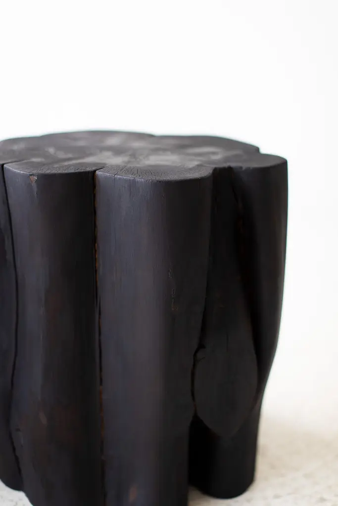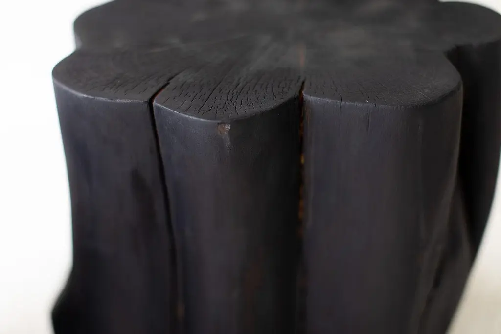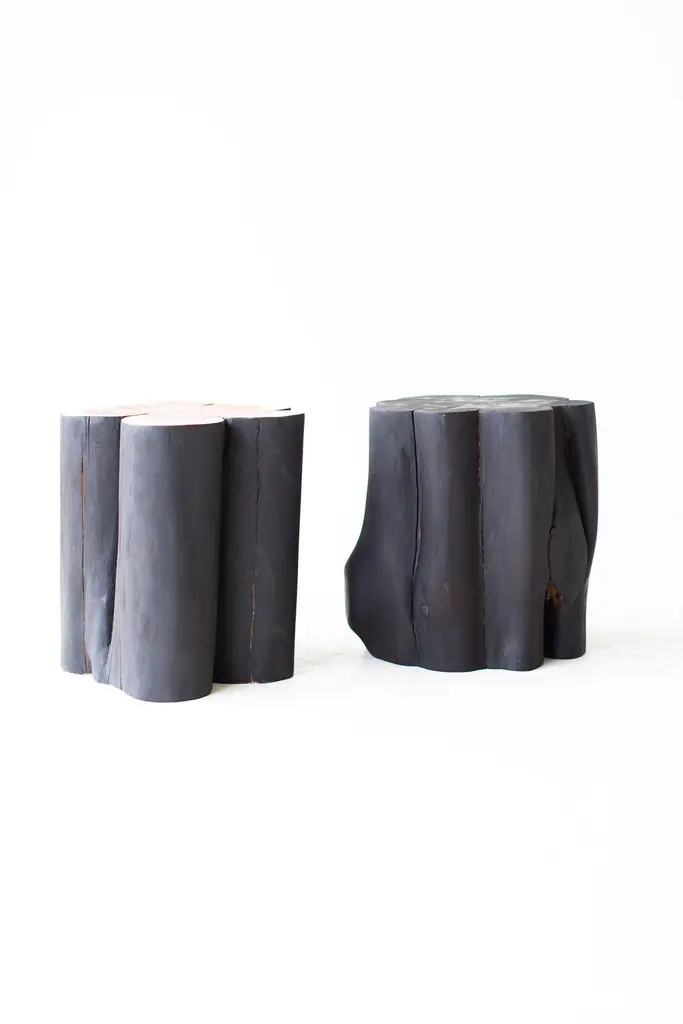 Please scroll down to read IMPORTANT INSTRUCTIONS ABOUT OUR STUMPS before purchase!Originating in 18th century Japan, shou sugi ban is a particularly striking method of preserving wood by charring it with fire. Traditionally, this practice is used with Japanese cedar in order to weatherproof it. The wood is burned until the surface is charred, and then coated with natural oil.Why buy our stumps?KILN DRIEDOur stumps all go through a drying process in our kiln, sometimes for up to a month. We are meticulous with bringing each and every log to a specific moisture level. This process helps with major cracking, long-term moisture issues, and bugs.ECO FRIENDLYIn an effort to replenish the trees we use, we plant 50+ trees a year. In addition, we practice salvage logging. Where do we source these? Some of the trees fall naturally. Some have damage from severe wind, lightning, flood, disease, or other natural disturbance so they need to be cut and removed before they fall. Others are fresh cut because people want them off their land. Salvage logging may reduce erosion, reduce intensity of future wildfires, and slow buildup of pest insects.FAMILY OWNEDThese are made from our family to yours. Quality is of utmost importance, and we hand cut, de-bark, sand, and finish every piece with care. COMMERCIAL GRADEThese stumps are meant to be loved and USED. Each is finished with a durable commercial-grade finish. This finish is tough enough for spills, kids, and holds up in hotel and hospitality settings.These Shou Sugi ban burned black stumps are made in the heart of Ohio with locally sourced red cedar. The stump can be used for a side table, a stool, or grouped together for a coffee table. Each stump is made from a solid trunk of red cedar and each is hand sawed, sanded, and burned until completely charred. They are then sprayed with a clear commercial grade finish. These can be burned fully or the tops left raw to expose the beautiful red cedar color. Every part of the process is handled with care - even the bark is hand chipped and sanded to honor the unique markings of each tree. Note: These are REAL tree stumps. Natural movement and cracking is normal. These are all slightly different in character and they may vary in size - No two pieces are exactly alike. Each size and color can be done in our indoor finish or more durable outdoor finish. Our team and clients absolutely love these.IMPORTANT INFORMATION ABOUT OUR STUMPS...1. Please unpack your stump immediately and leave it out of any packaging. These are real pieces of wood and need to breathe!2. The shou sugi ban finish is delicate. We try our best to put an extra thick coat of finish on the product, but we will not be held liable for damages on walls or furniture if finish chips exposing black.3. For OUTDOOR stumps : Though these are kiln dried and the wood can be used outdoors, sometimes when they arrive in different climates, humidity levels adjust and can affect the finish on top. We see this more often in direct sunlight. We do our very best and continue to make sure there are no issues, but we can not control climate. Solid wood and the elements are unpredictable and we will not be liable. The great thing about these logs is you can always sand them down and refinish.4. Wood naturally moves. These are solid pieces and for that reason, they are prone to cracking. You may get more cracks or bigger cracks in the first few weeks as the wood acclimates to its new home and climate.5. These stump tables have nylon glides (feet) underneath not only to make them easier to move around (they are heavy!), but also so there is nice air flow to the wood. The air flow is most effective on hard flooring. If you put these on rugs or carpeting, we suggest checking on the underside of your stump periodically to prevent any issues.6. We are not liable for any damages to property or people. If you have any concerns or questions you need to discuss, please write or call. We are always available, honest, and transparent about our products. Thank you and I hope you love these!SpecsPeriod/Model: New; Modern RusticSpecs: Red cedar, commercial grade finishThis listing is for our "normal" diameter stumps, the smallest diameter stumps we offer. We have medium and large sizes as well!DimensionsH: 21"W: 11" (give or take).Shipping price is per piece. If you are buying multiples, there will be additional charges.