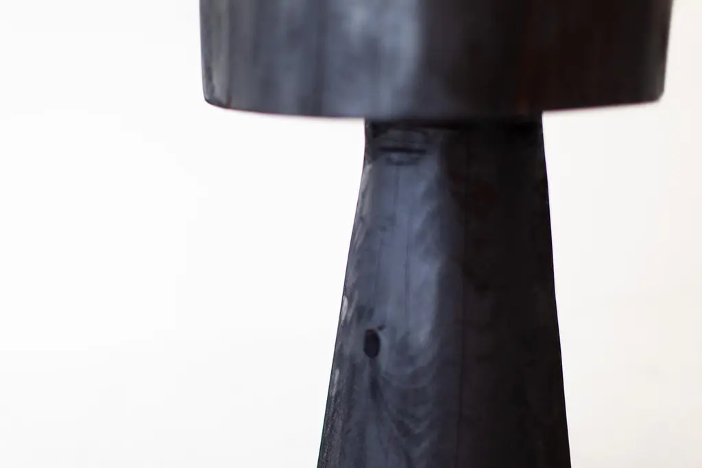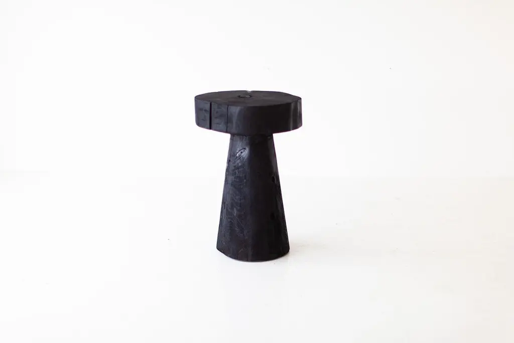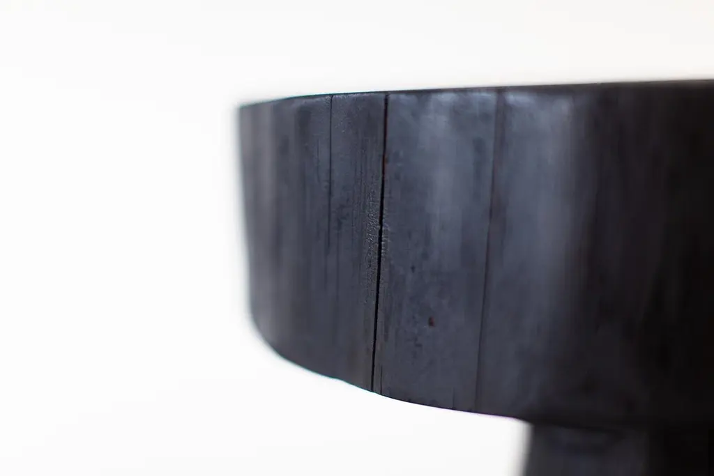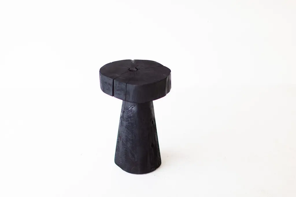Please scroll down to read IMPORTANT INSTRUCTIONS ABOUT OUR STUMPS before purchase!Originating in 18th century Japan, shou sugi ban is a particularly striking method of preserving wood by charring it with fire. Traditionally, this practice is used with Japanese cedar in order to weatherproof it. The wood is burned until the surface is charred, and then coated with natural oil.Why buy our stumps?KILN DRIEDOur stumps all go through a drying process in our kiln, sometimes for up to a month. We are meticulous with bringing each and every log to a specific moisture level. This process helps with major cracking, long-term moisture issues, and bugs.ECO FRIENDLYIn an effort to replenish the trees we use, we plant 50+ trees a year. In addition, we practice salvage logging. Where do we source these? Some of the trees fall naturally. Some have damage from severe wind, lightning, flood, disease, or other natural disturbance so they need to be cut and removed before they fall. Others are fresh cut because people want them off their land. Salvage logging may reduce erosion, reduce intensity of future wildfires, and slow buildup of pest insects.FAMILY OWNEDThese are made from our family to yours. Quality is of utmost importance, and we hand cut, de-bark, sand, and finish every piece with care. COMMERCIAL GRADEThese stumps are meant to be loved and USED. Each is finished with a durable commercial-grade finish. This finish is tough enough for spills, kids, and holds up in hotel and hospitality settings.This Shou Sugi Ban side table is hand sculpted in the heart of Ohio out of a solid truck of local red cedar. The side table can be used for a nightstand, a stool, or grouped together for an architectural larger table. They are great next to a chair, sofa, or bathtub. Each stump is made from a solid trunk of red cedar and is hand sawed, sanded, and burned until completely charred. They are then sprayed with a clear commercial grade finish. These can be burned fully or the tops left raw to expose the beautiful red cedar color. Every part of the process is handled with care - even the bark is hand chipped and sanded to honor the unique markings of each tree. Note: These are REAL tree stumps. Natural movement and cracking is normal. These are all slightly different in character and they may vary in size - No two pieces are exactly alike. These are true pieces of art!IMPORTANT INFORMATION ABOUT OUR STUMPS...1. Please unpack your stump immediately and leave it out of any packaging. These are real pieces of wood and need to breathe!2. The shou sugi ban finish is delicate. We try our best to put an extra thick coat of finish on the product, but we will not be held liable for damages on walls or furniture if finish chips exposing black.3. For OUTDOOR stumps : Though these are kiln dried and the wood can be used outdoors, sometimes when they arrive in different climates, humidity levels adjust and can affect the finish on top. We see this more often in direct sunlight. We do our very best and continue to make sure there are no issues, but we can not control climate. Solid wood and the elements are unpredictable and we will not be liable. The great thing about these logs is you can always sand them down and refinish.4. Wood naturally moves. These are solid pieces and for that reason, they are prone to cracking. You may get more cracks or bigger cracks in the first few weeks as the wood acclimates to its new home and climate.5. These stump tables have nylon glides (feet) underneath not only to make them easier to move around (they are heavy!), but also so there is nice air flow to the wood. The air flow is most effective on hard flooring. If you put these on rugs or carpeting, we suggest checking on the underside of your stump periodically to prevent any issues.6. We are not liable for any damages to property or people. If you have any concerns or questions you need to discuss, please write or call. We are always available, honest, and transparent about our products. Thank you and I hope you love these!SpecsPeriod/Model: new; organic modernSpecs: Red Cedar, commercial grade finishDimensionsH: 24"W: 15" (give or take).Shipping price is per piece. If you are buying multiples, there will be additional charges.