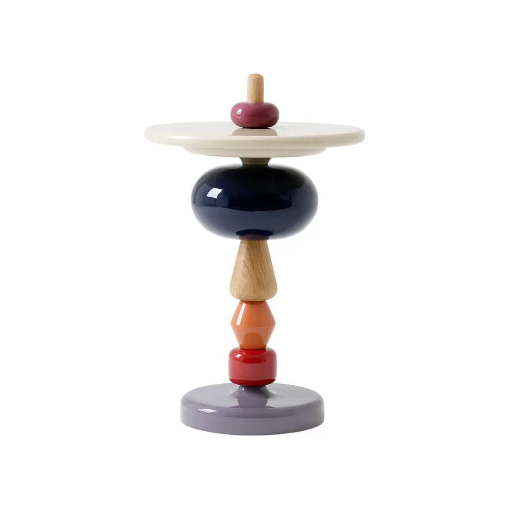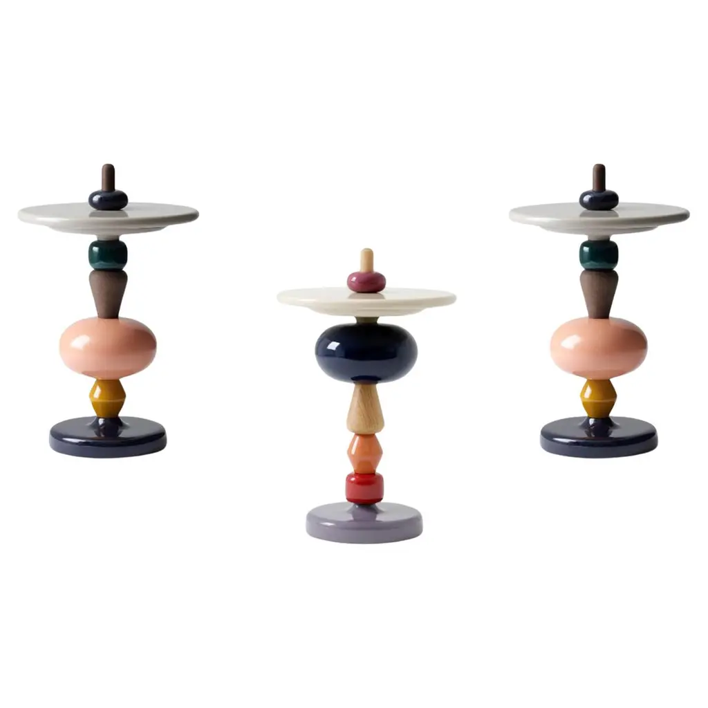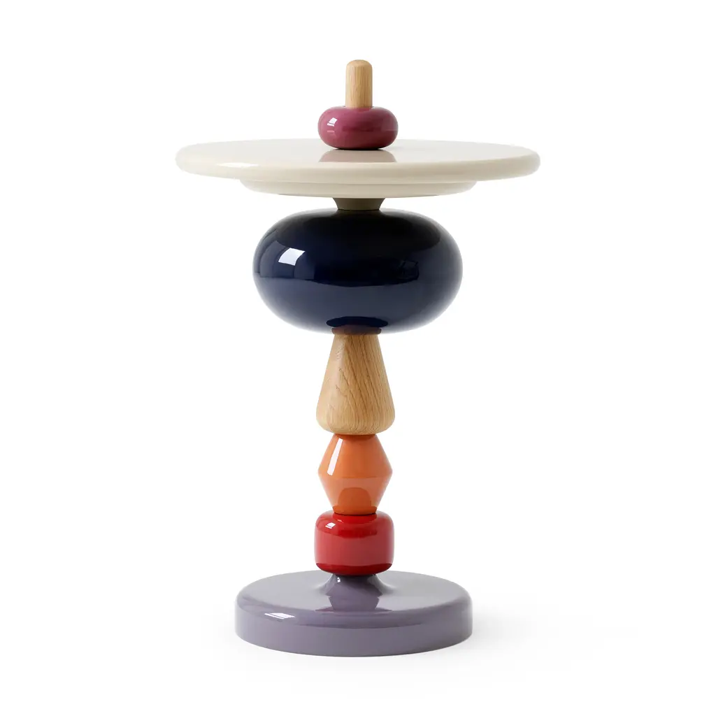 With the playful Shuffle Side Table, you decide the shape and height with its rearrangeable stacking function, allowing you to change its look according to your whims. The table’s lacquered wooden components—which provide endless variations—were inspired by a stacking clown toy from Norwegian designer Mia Hamborg’s chi