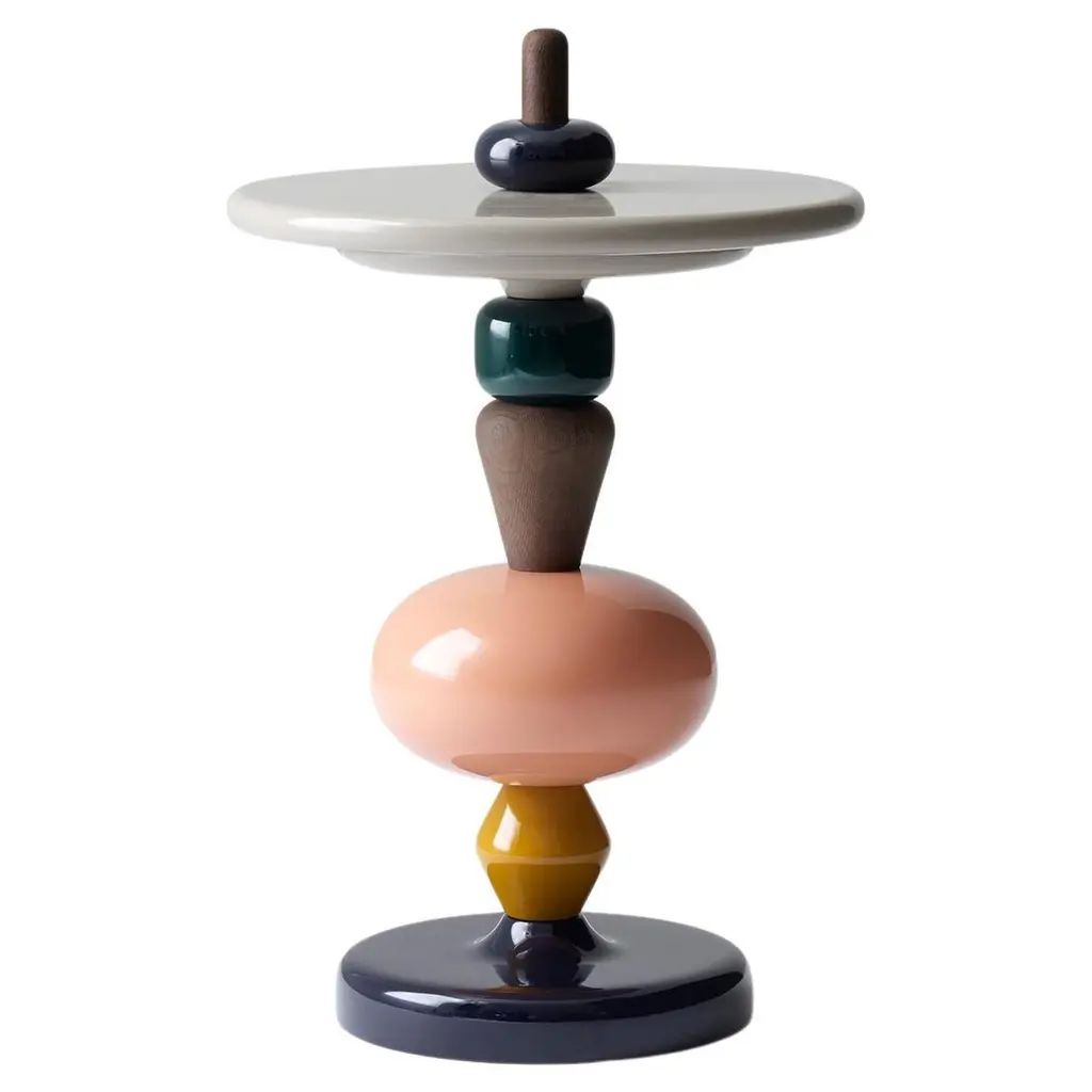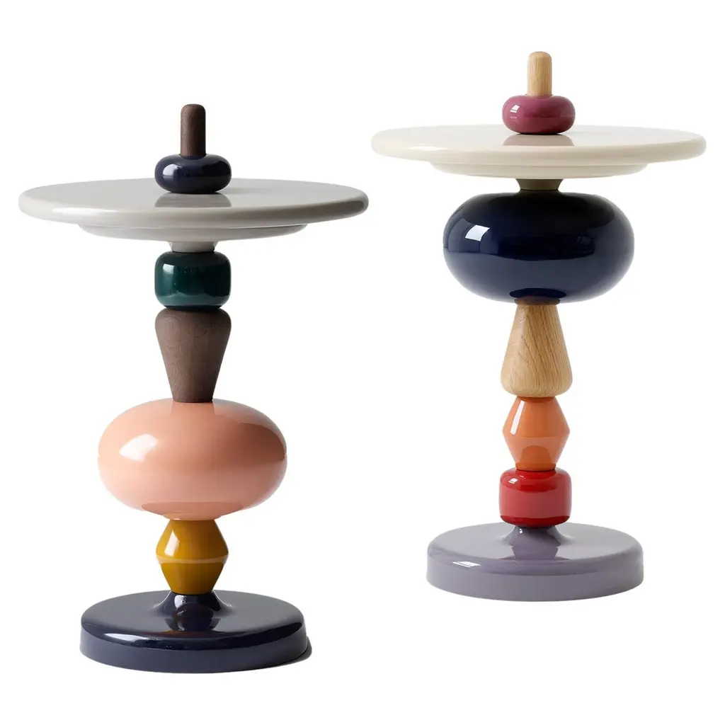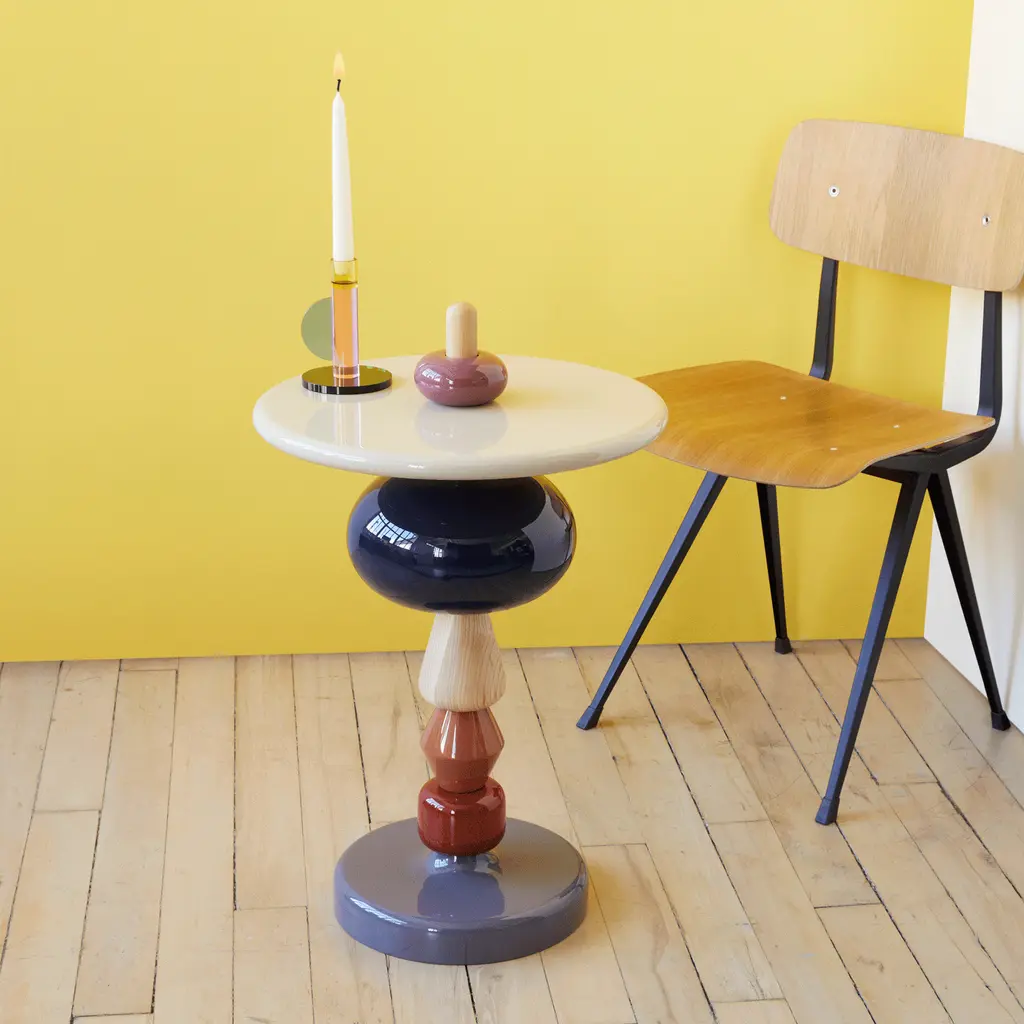 With the playful Shuffle Side Table, you decide the shape and height with its rearrangeable stacking function, allowing you to change its look according to your whims. The table’s lacquered wooden components—which provide endless variations—were inspired by a stacking clown toy from Norwegian designer Mia Hamborg’s chi