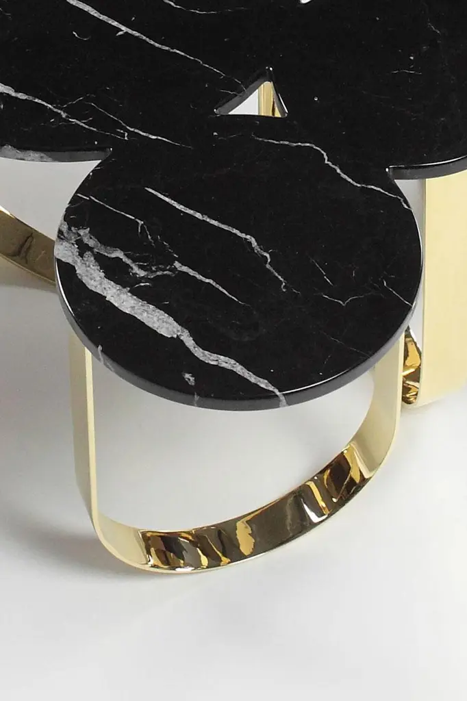 Side End Table Circular Black Marquinia Marble Brass Collectible Design Italy