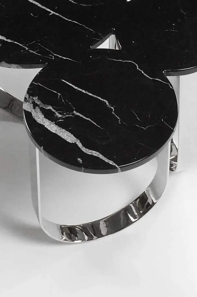 Side End Table Circular Organic Shape Marble Black Steel Collectible Design
