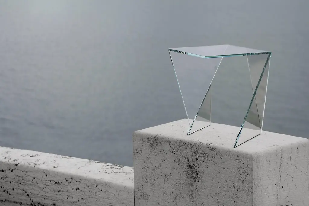 Side End Table Glass Crystal Geometric Shape Collectible Design Handmade Italy