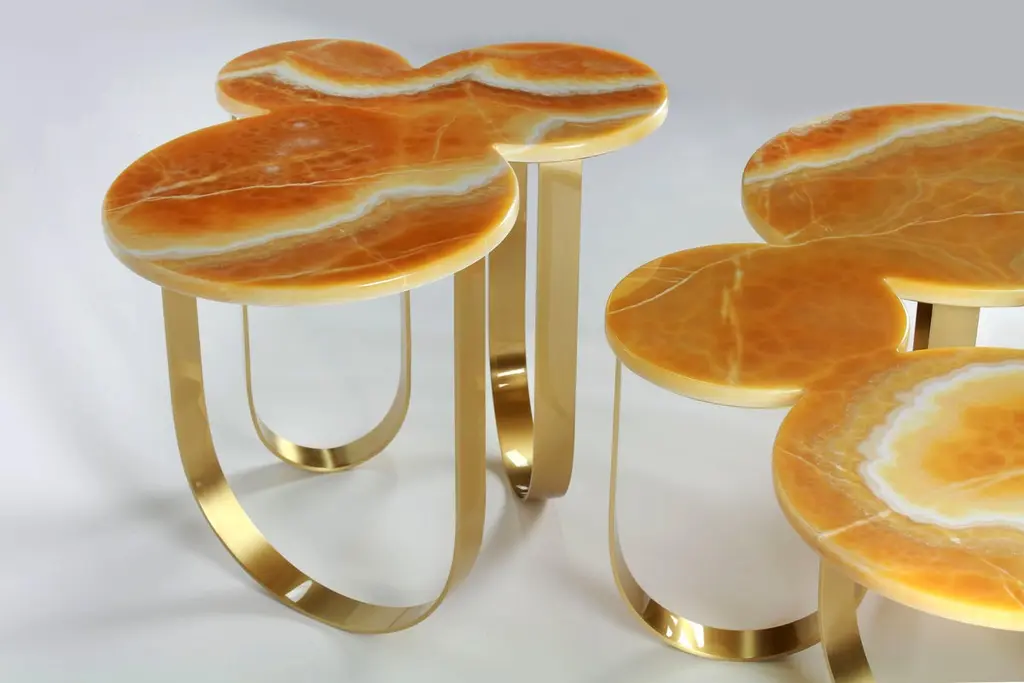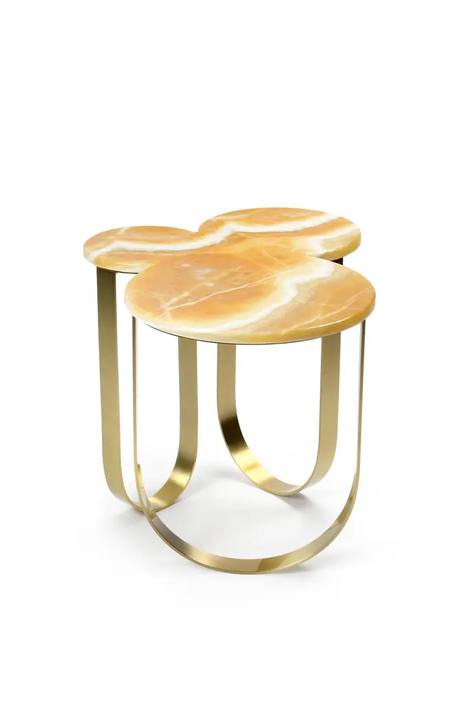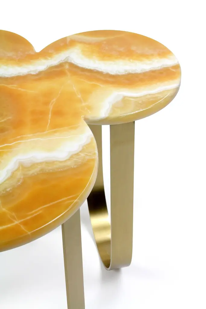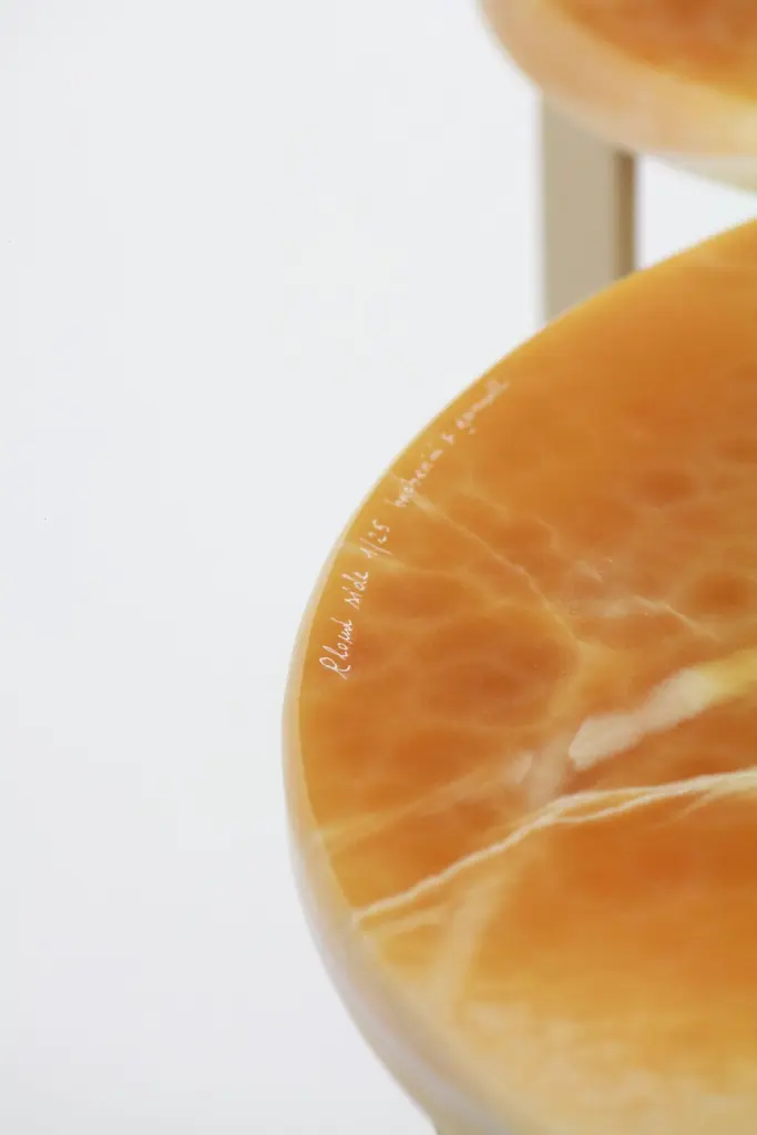 The 'Cloud' is a spectacular side table with structure in brushed brass and top in orange onyx. The brushed finishing of the brass creates interesting reflections of light. Dimensions: L 73, W 54, H 50 cmLimited Edition of 45. Each side table is hand signed and numbered by the artists (engraved), 100% handmade in Italy and comes with a “Certificate of Authenticity”. "We wanted to kidnap a cloud, slice it into thin sheets like it's done with blocks of marble.After, we take the central slab with the most beautiful pattern.To keep the cloud from escaping, we tied it on to weights, disguising them as light, golden legs.Now, that the cloud is fixed to the ground forever we dressed her in the colour of orange onyx which rested for millennia in the depth of heavy mountains.The cloud has become a table and nobody will ever unmask it".The artworks by Barberini & Gunnell are regularly shown at international art fairs, such as PAD London, PAD Genève, PAD Monaco, Salon Art & Design New York, ArtMiami.Expositions of this table:- Pad London, Berkeley Square, London, W1, 1-7 October 2018- The Salon Art & Design, Park Avenue Armory, New York, 8-12 November 2018- ArtMiami, 1 Herald Plaza, NE 14th Street, Miami, 4-9 December 2018- Pad Ginève, Palexpo Geneva, Switzerland, 31 January-3 February 2019The artworks by Barberini & Gunnell are regularly shown at international art fairs, such as PAD London, PAD Genève, PAD Monaco, Salon Art + Design New York, ArtMiami.IMPORTANT INFORMATION REGARDING SHIPPING:Please contact us for an independent shipping quote as we provide high quality shipping at competitive prices due to our frequency of shipping, relations with international shipping companies and the possibility to organize directly from Italy.We take care of the entire customs procedure and paperwork. On request we organize a white glove delivery and installation of the artwork inside of the property of the client. All shipments are ALL-RISK insured.We carefully pack all artworks in strong wooden crates to ensure safe transport. This service is done directly in our atelier and is complimentary. All of our artworks travel with a shock watch system in order to monitorate rough handling by shippers and movers.