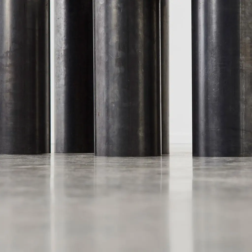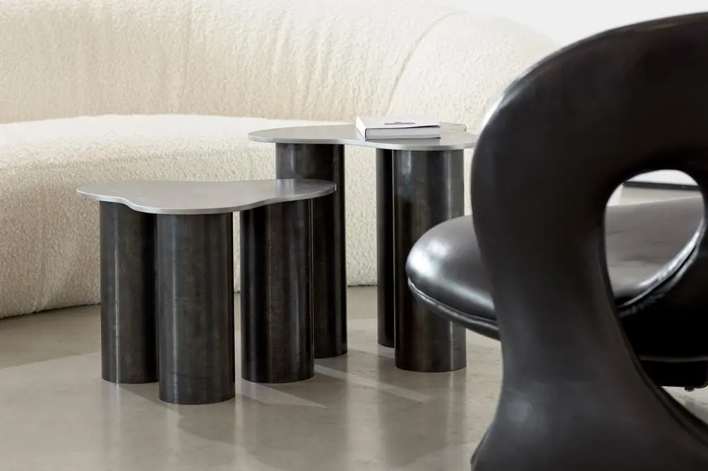 Side table 001 is a made to order design by Archive for Space, a multidisciplinary design practice founded in London in 2019. Side Table 001 was designed to celebrate raw steel through exploring the material’s cyclical nature. Made from standard tube sizes and gauges, the entire piece is fully recyclable. The raw materials are untreated allowing the surfaces to develop a patina over time that tells the story of the piece. Each piece is handmade in Stoke-on-Trent, UK. The tables come in two heights shown in the last image each listed separately. The tables will show some signs of patina and surfaces marks already, which are innate to the material. Archive for Space is Arabella Maza and Stephen Maginn. They work across architecture, interiors, industrial design, installation and set design. Arabella was educated at The Architectural Association and Stephen was educated at The University of Edinburgh and Edinburgh College of Art. The studio also leads a design unit at The University of Cardiff entitled Archiving Place. Archive for Space adopts a unique approach to each project, drawing and synthesising on an extensive archive of references and disciplines blending their research into a conscientious yet individual experience. They first met while working on a diverse range of projects at the late Sir Terence Conran’s architecture, interior design and product design studio, Conran and Partners.