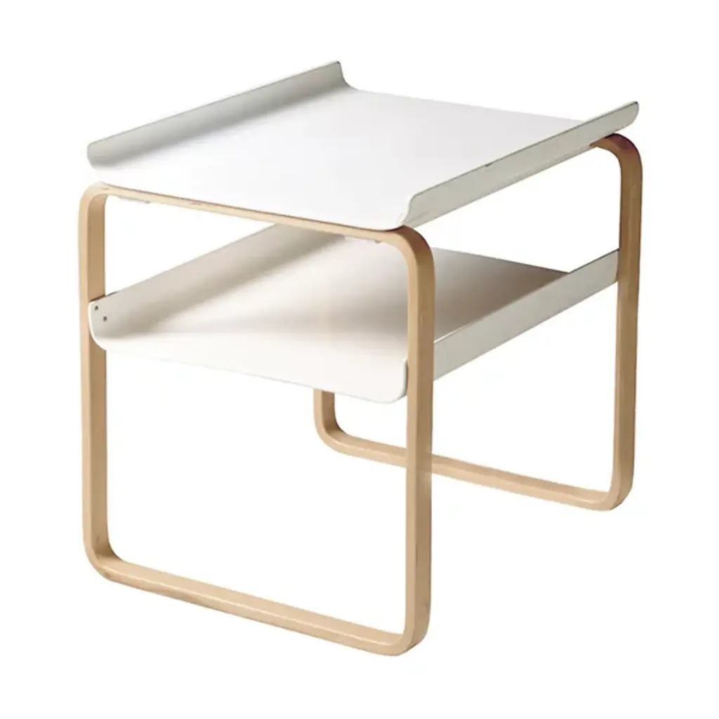 Side Table 915 is the perfect catch-all for the modern day home. Whether sofa-side or in the bedroom, 915's dual surfaces provide ample storage space for your books, TV remotes, and household trinkets. Designed 1931-1932.