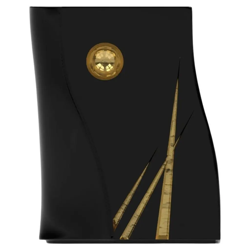 Eje-Design celebrates the metaphorical nature of form. This abstract and sculptural creation from Eje-Design, as refined as it is poetic, aspires to a world of beauty and originality. At once complex and simple, original and distinguished, it will bring a touch of creation and elegance to your interior.Coated in the stunning Light Oyster, a signature lacquer color developed in collaboration with Rolls Royce, this piece exudes an aura of luxury and timeless charm. Whether placed in a modern or classic setting, it effortlessly infuses warmth, love, and an elegant flair into your living space. It’s a perfect reflection of creativity and emotion, offering both functionality and aesthetic pleasure.Let this exquisite side table / bed side table from Eje-Design become a part of your home, transforming your environment with a touch of grace and a dash of art.This item is part of a limited edition, making it an exclusive and highly sought-after object. To guarantee its authenticity and rarity, a certificate of authenticity will be included with the product. This certificate certifies the limited edition to which the item belongs, confirming that it is an authentic and numbered piece. By owning this item, you become the proud owner of an exceptional object, whose value and unique character will only increase over time. It is not only a rare acquisition but also an investment in exclusivity.Limited Series: 289 piecesDesigner : JaaDimensions without the glass top : Height: 50cm Width: 45,5cm Depth: 24cm The side table is sold without the top, allowing you to create a custom top with your preferred dimensions and materials. This gives you the freedom to tailor the table to your needs and style. You can use it with out glass top.Materials : This side table / bed side is made from a block of epoxy resin with gold plat .In a world where mass production predominates, we have chosen to focus on craftsmanship and quality. Each creation we offer is made to order by our passionate and dedicated employees, thus ensuring careful attention to every detail.For each order, a production time of approximately 3 months is expected. This may seem long, but it is a guarantee of quality. Unlike mass-produced products, our creations require time to be made with the level of care and passion that we claim. This time also allows us to adjust each piece according to the specific needs of our customers.As each product is handmade by our artisans, slight variations in rendering may exist between the same product of the same color. The rendering of the photos and illustrations alaso depends on the settings and characteristics of your screen. The actual rendering of the piece will therefore be different in reality. Consequently, the textures, colors, shadows, flashes, brightness and renderings would therefore not be contractual