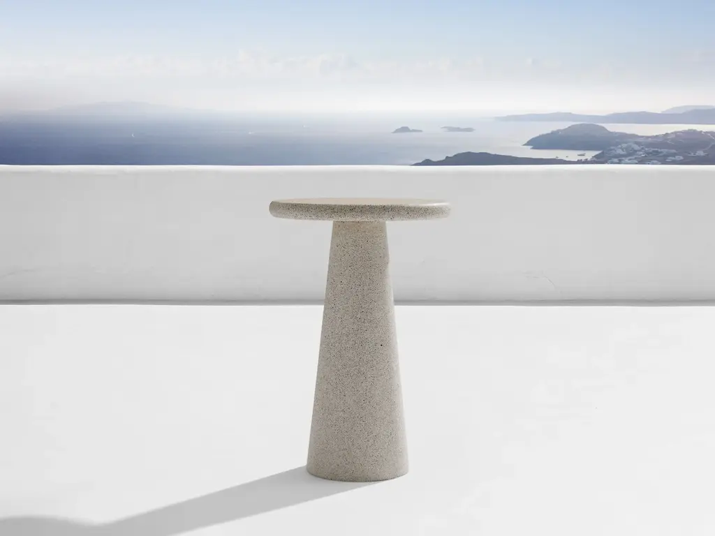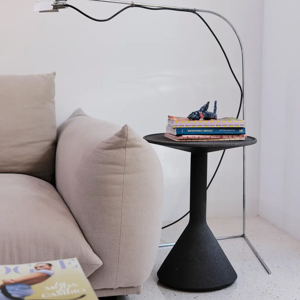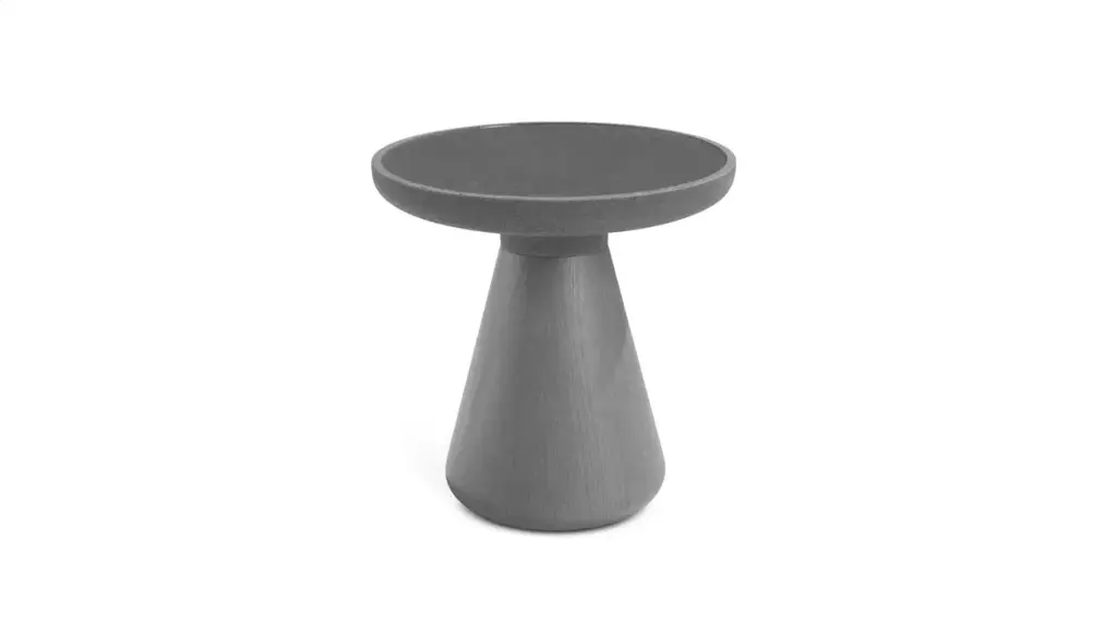 Celebrated for his signature pared-down style, Berlin-based designer Konstantin Grcic contrives a Minimalist take on a side table, executed in architectonic concrete. With a slightly rimmed tabletop and inverted funnel-shaped pedestal base, the solid architectural B is offered in grey or black, with the grey model apt for both indoor and outdoor use.