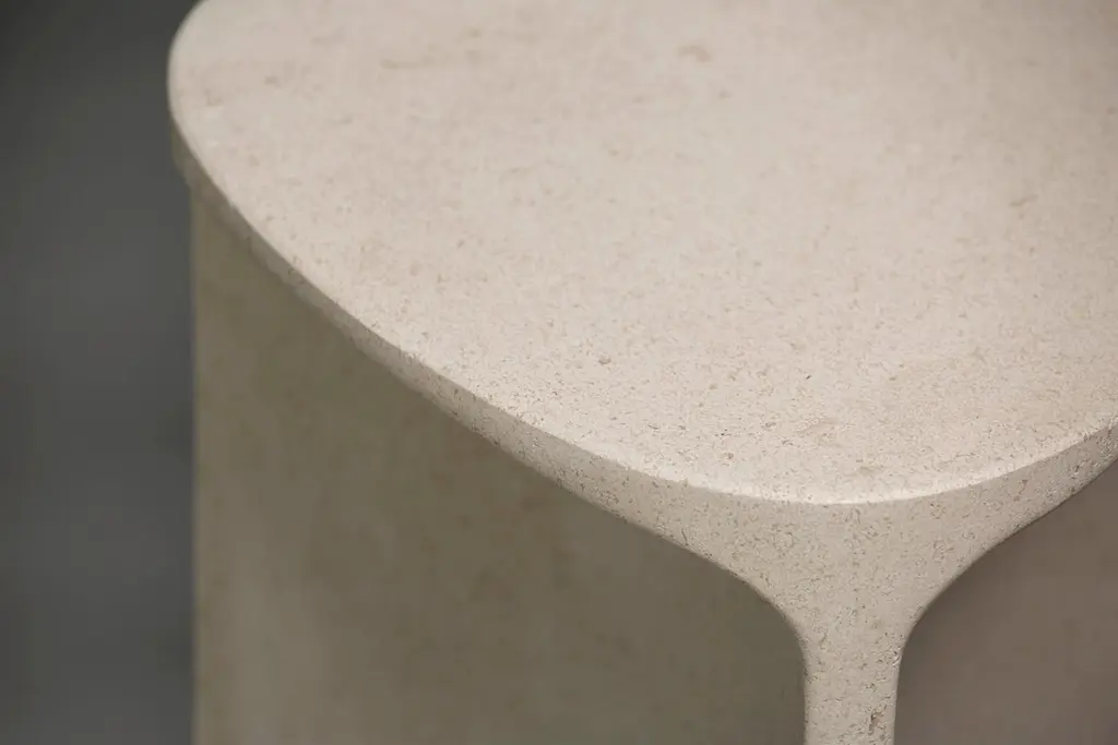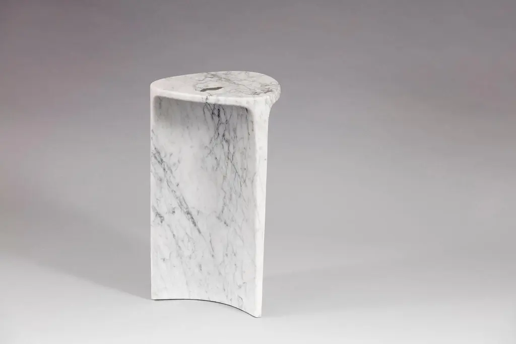 Carv occasional table is Cut from a single block of Chauvigny Limestone.Essential and organic design, naturally creating a flat tabletop flowingto a Y - shaped foot, revealing the stone’s veinsfrom the exterior surface through to it’s core,showcasing marble as a three dimensional piece rather than just a finishing surface.Design by Daniel Fintzi FORMAR - Original designs in solid stone.Marble comes in many shapes and sizes.For most customers the largest blocks are the most sought after.Smaller pieces are usually broken down into low value products that don’t reflect thenatural beauty that has taken millions of years to form.We work with quarries around the world, giving these off-cuts a new purpose.Formar’s process does not require any further excavation, working towards a healthy environment of sustainable consumption.Disclaimer: Marble is a natural material, variations in color and veining are expected, these make each table a unique, timeless piece.