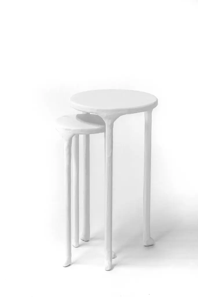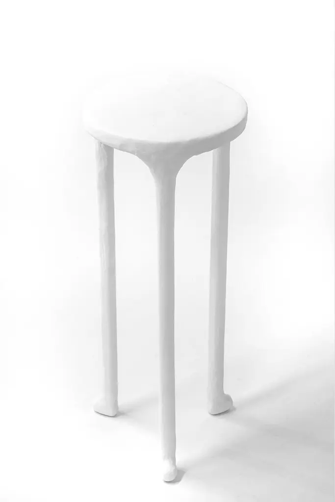 Side Table Classic Modern White Plaster And Steel Minimalist Hand-Shaped Contemp