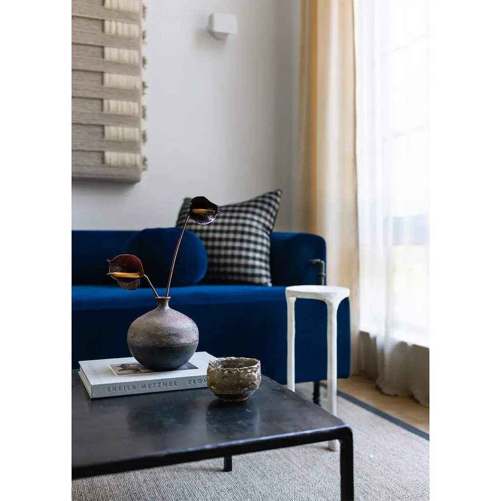 TABLE NO. 3 - PLASTER - SMALLJ.M. Szymanskid. 2020Our plastered side-table is hand plastered, which adds a raw texture and rich depth to an already unique and refined design. Custom sizes available and also, sold as a set. Made in the Bronx, New York, USA.Our products are fabricated and finished by hand, so variations in size, shape, and patina color are a natural result of this process. Tooling marks and surface scratches are part of the character of many finished pieces. All products are sealed with oil and wax, which, over time, are not impervious to moisture. Our blackened steel pieces installed outside or in areas exposed to moisture indoors, especially in marine environments, will rust. Condensation from hot and cold drinks will leave rings on blackened steel table tops. Coasters or placemats can protect the finish. Periodic maintenance of blackened steel items may be required.