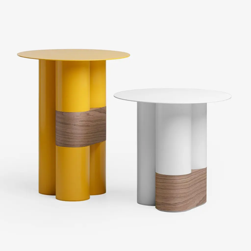 Layers Side Table by WOO – A Timeless Blend of History and Modern DesignThe Layers side table, designed by Dmitry Kozinenko for WOO, is a striking piece that combines textures and forms to evoke a sense of timelessness. Inspired by the interplay of past and present, this table’s design suggests an object shaped by history, yet perfectly suited for contemporary interiors.The table’s sturdy, deliberately massive base is crafted from aluminum pipes, providing a strong and balanced foundation. Adding a unique touch, a contrasting wooden insert bridges two adjacent legs, introducing an element of asymmetry and artistry. This distinctive feature resembles a "patch," lending the table a sense of character, storytelling, and intrigue.The Layers side table offers versatility and adaptability, with customizable paint colors or veneer finishes that allow it to seamlessly integrate into a wide variety of interiors. Whether as a focal point or a complementary piece, its thoughtful design makes it ideal for both modern and eclectic spaces.