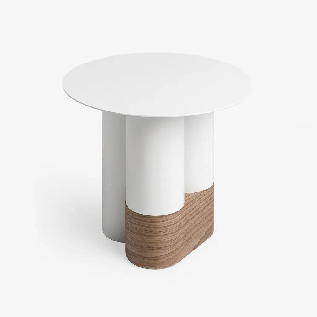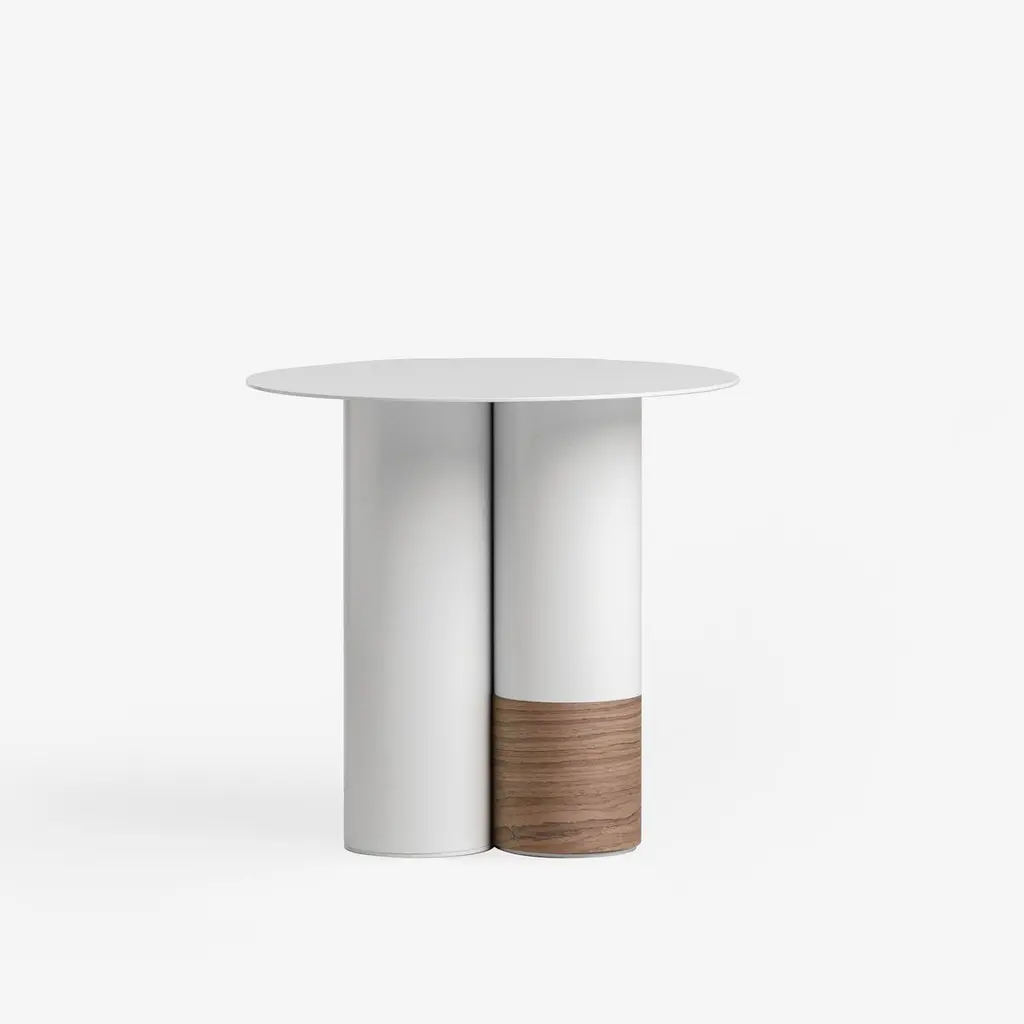 Layers Side Table by WOO – A Timeless Blend of History and Modern DesignThe Layers side table, designed by Dmitry Kozinenko for WOO, is a striking piece that combines textures and forms to evoke a sense of timelessness. Inspired by the interplay of past and present, this table’s design suggests an object shaped by history, yet perfectly suited for contemporary interiors.The table’s sturdy, deliberately massive base is crafted from aluminum pipes, providing a strong and balanced foundation. Adding a unique touch, a contrasting wooden insert bridges two adjacent legs, introducing an element of asymmetry and artistry. This distinctive feature resembles a "patch," lending the table a sense of character, storytelling, and intrigue.The Layers side table offers versatility and adaptability, with customizable paint colors or veneer finishes that allow it to seamlessly integrate into a wide variety of interiors. Whether as a focal point or a complementary piece, its thoughtful design makes it ideal for both modern and eclectic spaces.