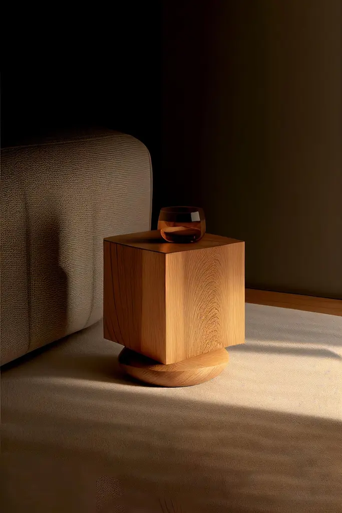 Side Table, Night Stand In Solid Wood, Auxiliary Table Socle 2 By Joel Escalona