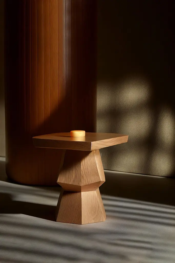 Side Table, Night Stand In Solid Wood, Auxiliary Table Socle 3 By Joel Escalona