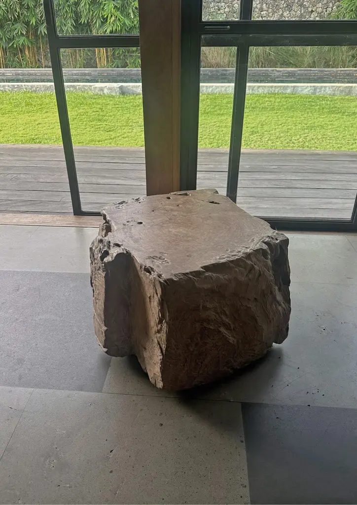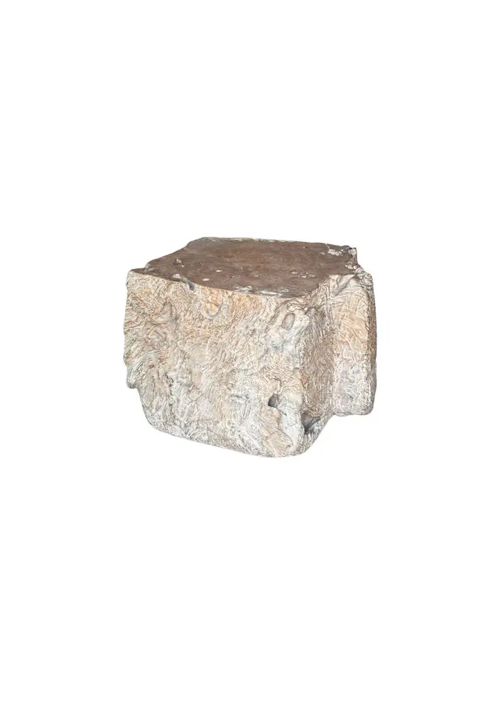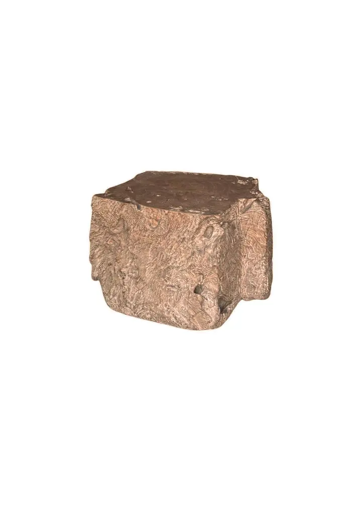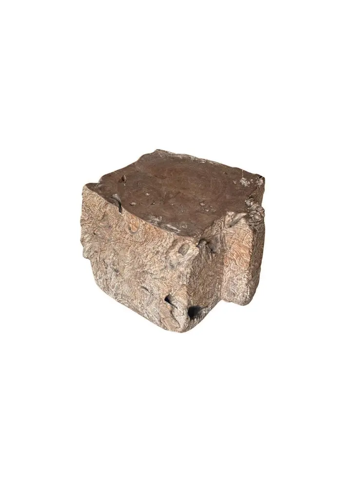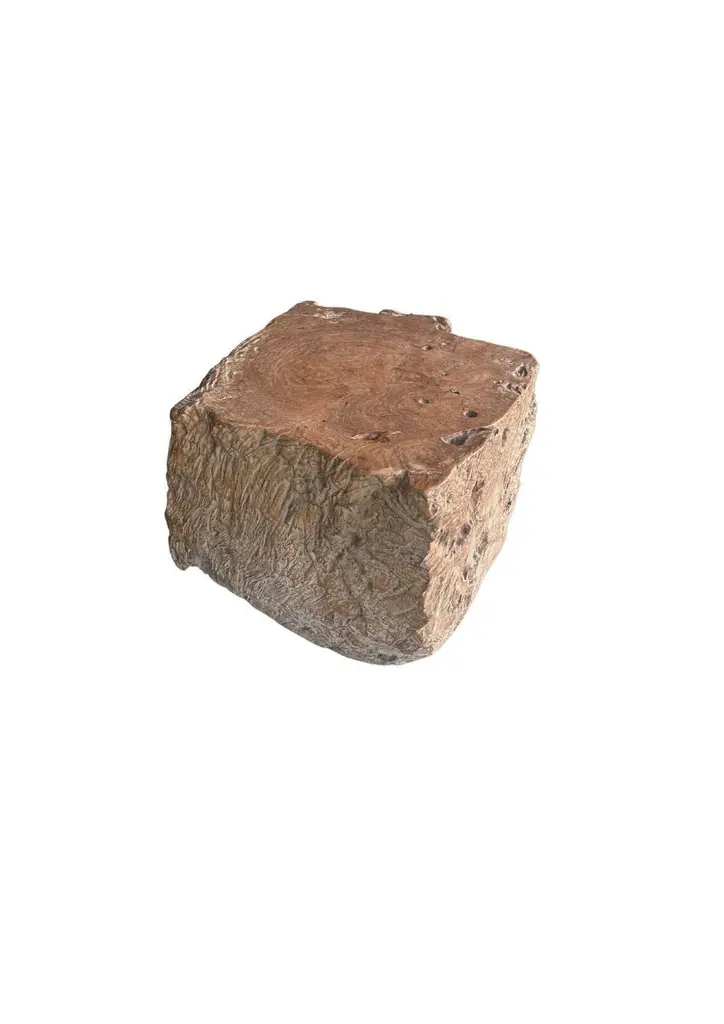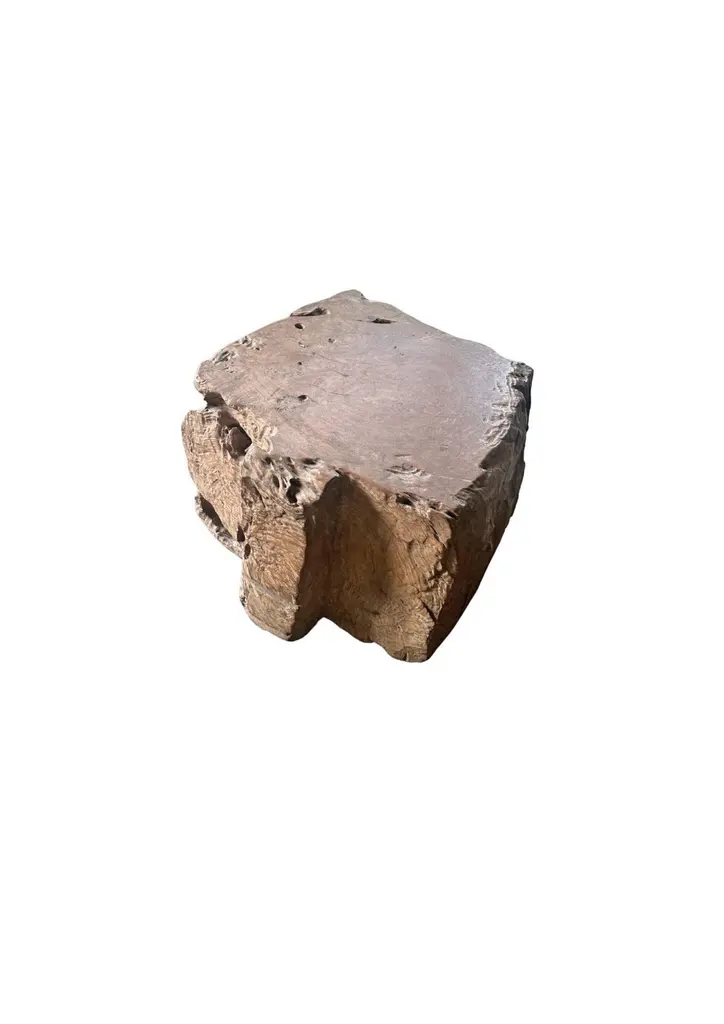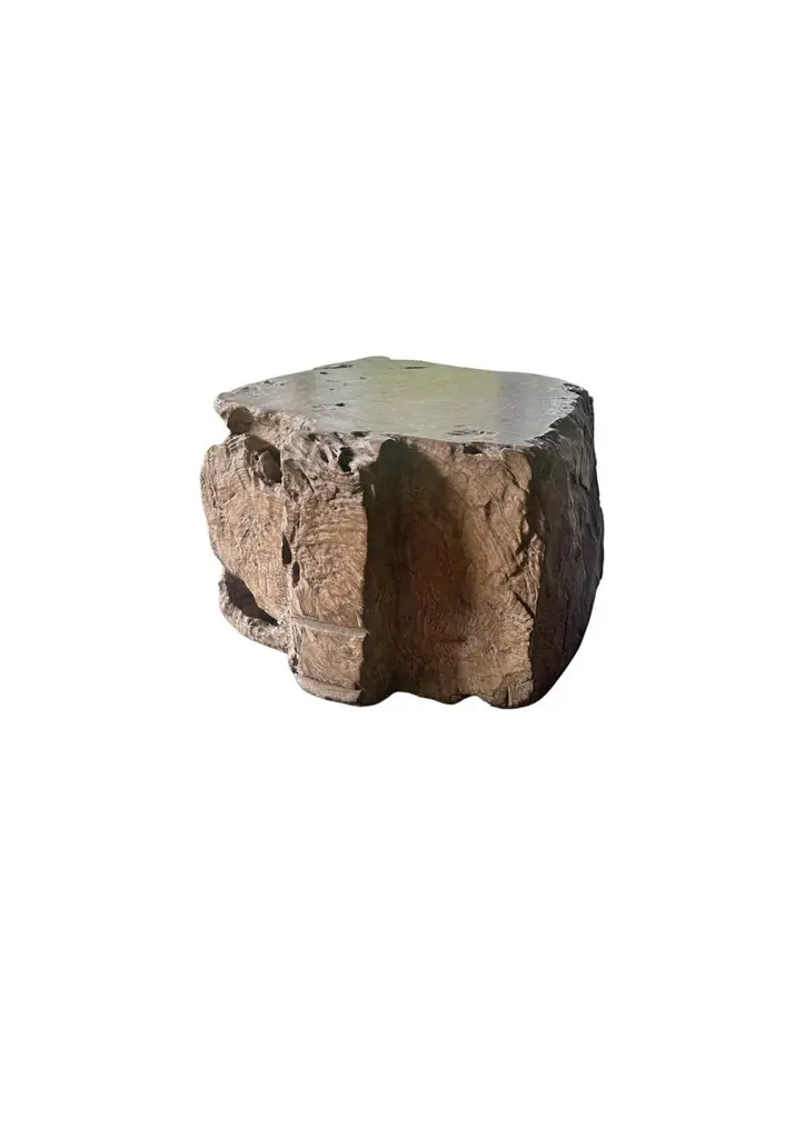 A wonderfully organic side table carved from a single block of burl teak wood. Its neutral pigment and subtle wood texture makes it perfect for any space. The mix of shades and wood textures add to its charm.