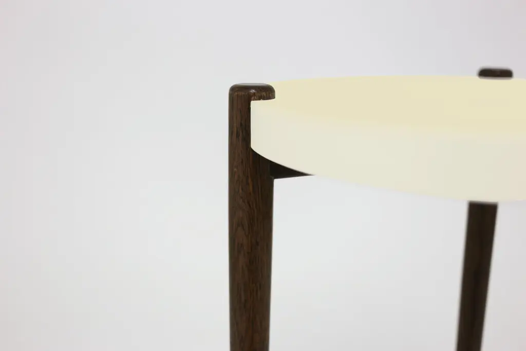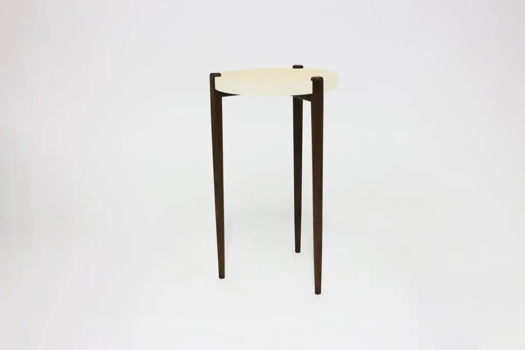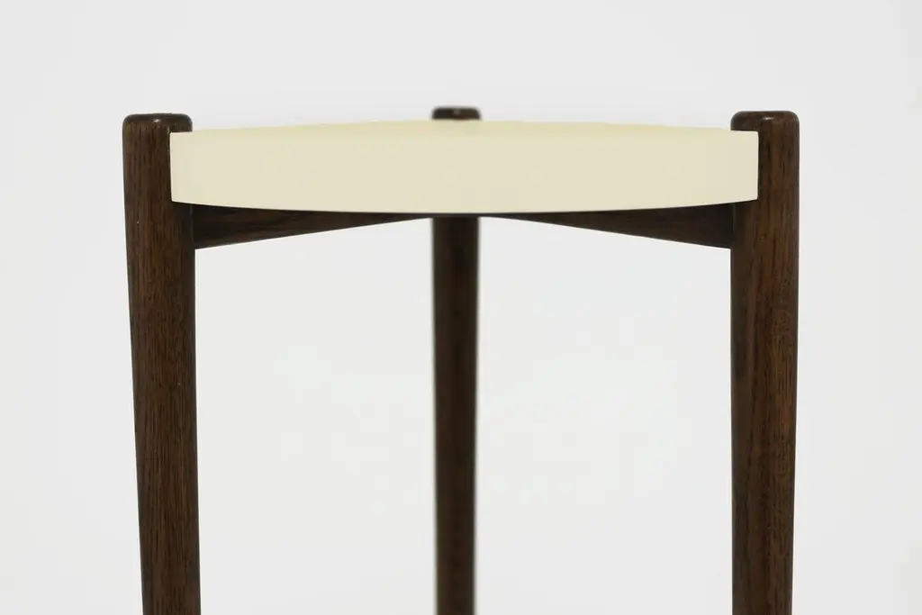 Sidetable With Ivory Lacquer Painted Top And Oak Wood Legs