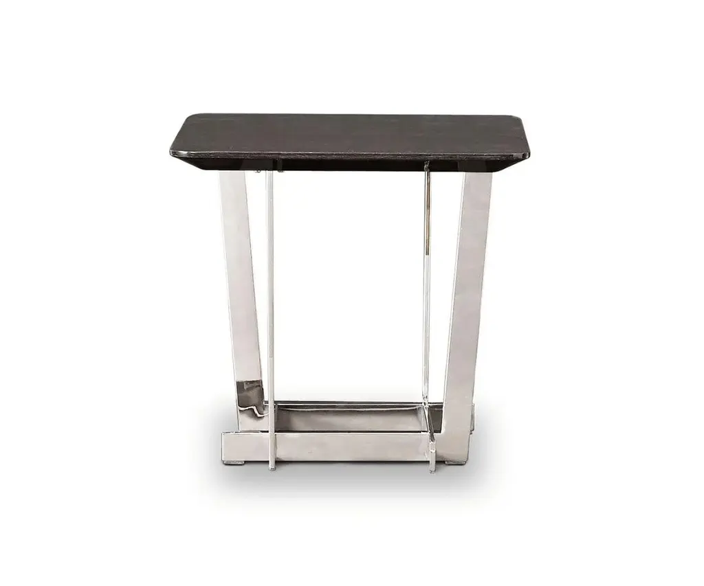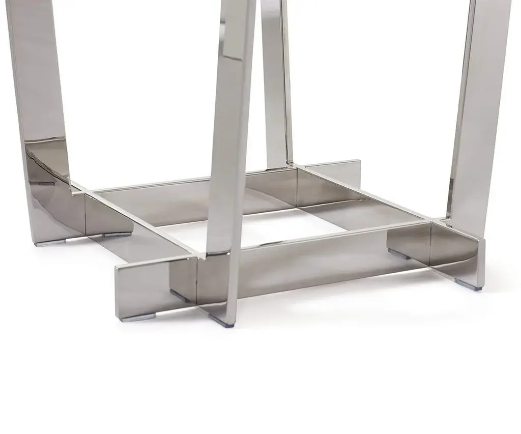 Elevated on sleek, stainless steel legs, the Sieva End Table features a square top in a high gloss finish that creates the perfect addition to your modern living space. With its series of angles, this piece is an eye catching complement to your sofa or sectional.
