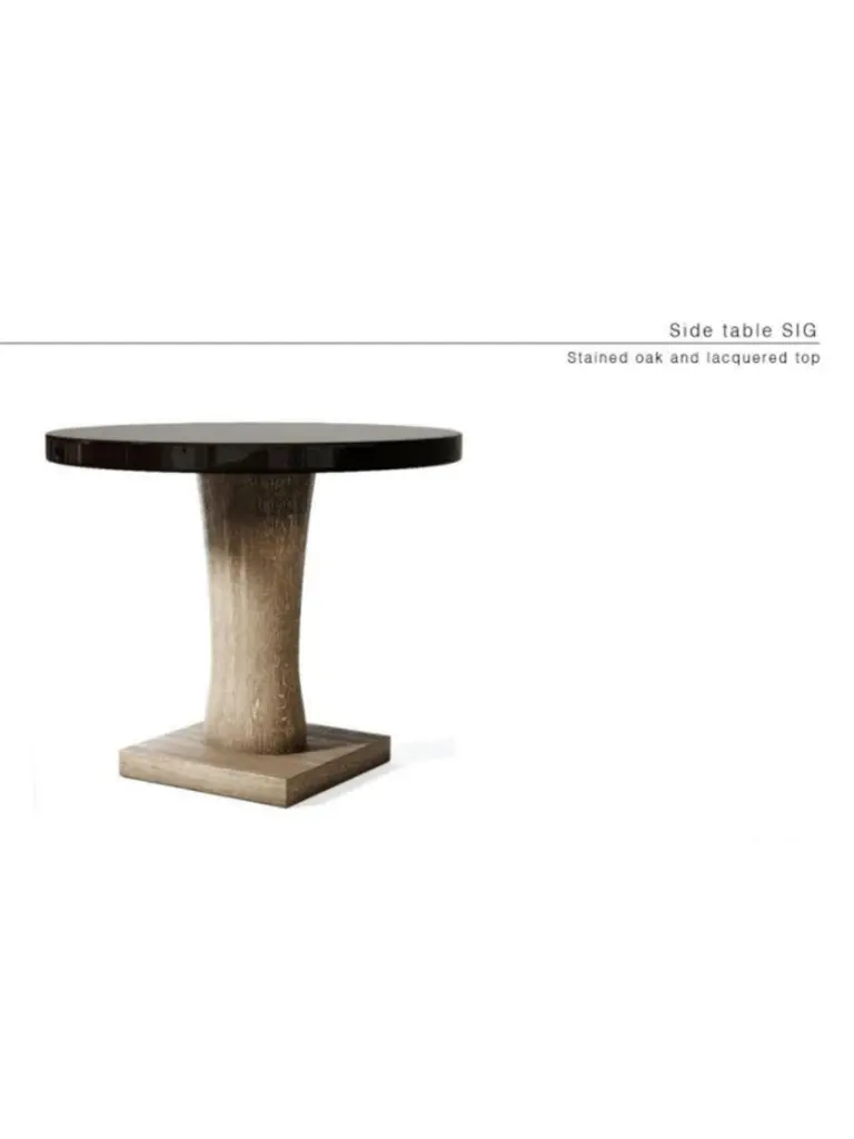 SIG side table by LK Edition.Limited edition. Dimensions: Diameter 85 x height 65 cm Materials: Natural brushed oak, lacquer top.It is with the sense of detail and requirement, this research of the exception by the selection of noble materials and his culture of the French know-how, that LK has built up its principles and set up his skills. LK will meet your expectations and your requirements in residential, hotel, trade, yachts ... And custom-made furniture.LK, is a discrete French high-end decoration company working on projects throughout the world for well-to-do clients and prestigious brands. In September 2019, they are launching their first collection of furniture for the MAISON&OBJET exhibition. The pieces exhibited are a selection from models produced over the last ten years that reveal a quest for something exclusive and natural, signed by interior designer Pierre-Alexis Gilbert, in collusion with his wife and partner Katia Le Vaillant.