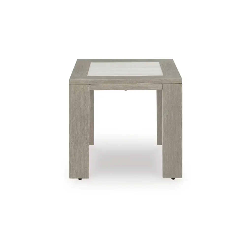 Elevate your outdoor entertaining with this sophisticated end table that perfectly balances style and durability. The premium aluminum frame showcases a convincing wood-look finish while offering superior weather resistance, creating an elegant yet practical addition to your outdoor space. The crowning feature is its luxurious sintered stone tabletop, delivering the organic beauty of natural stone with enhanced durability and maintenance-free convenience.