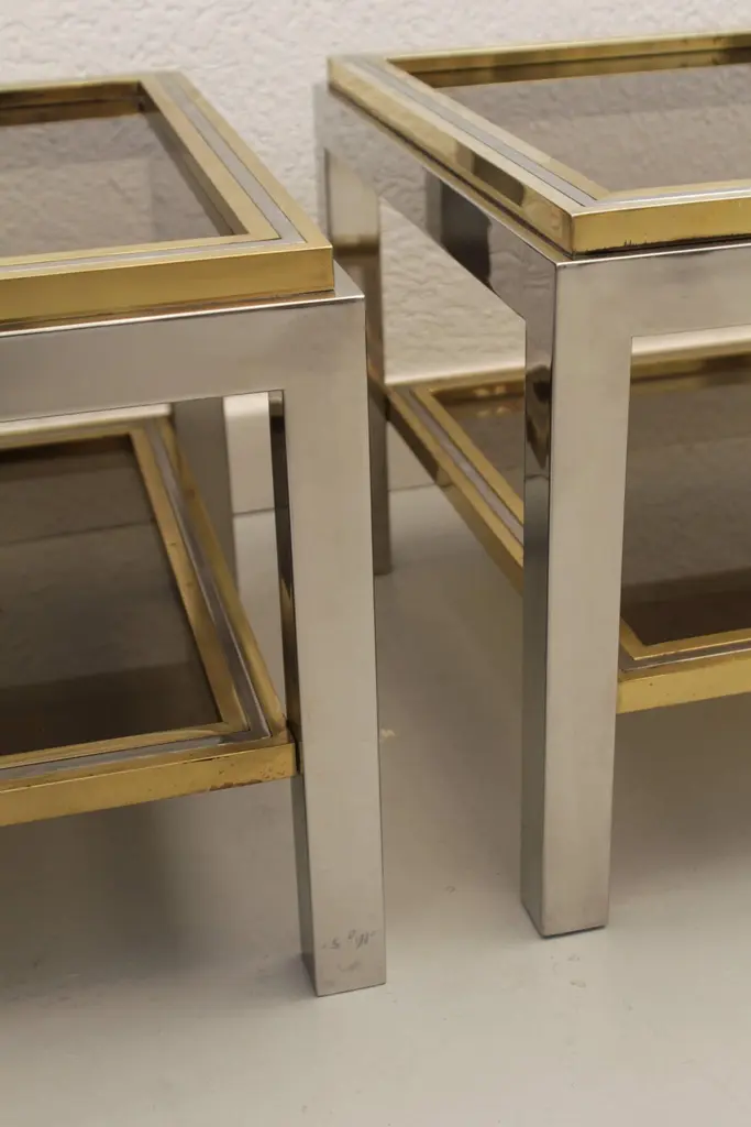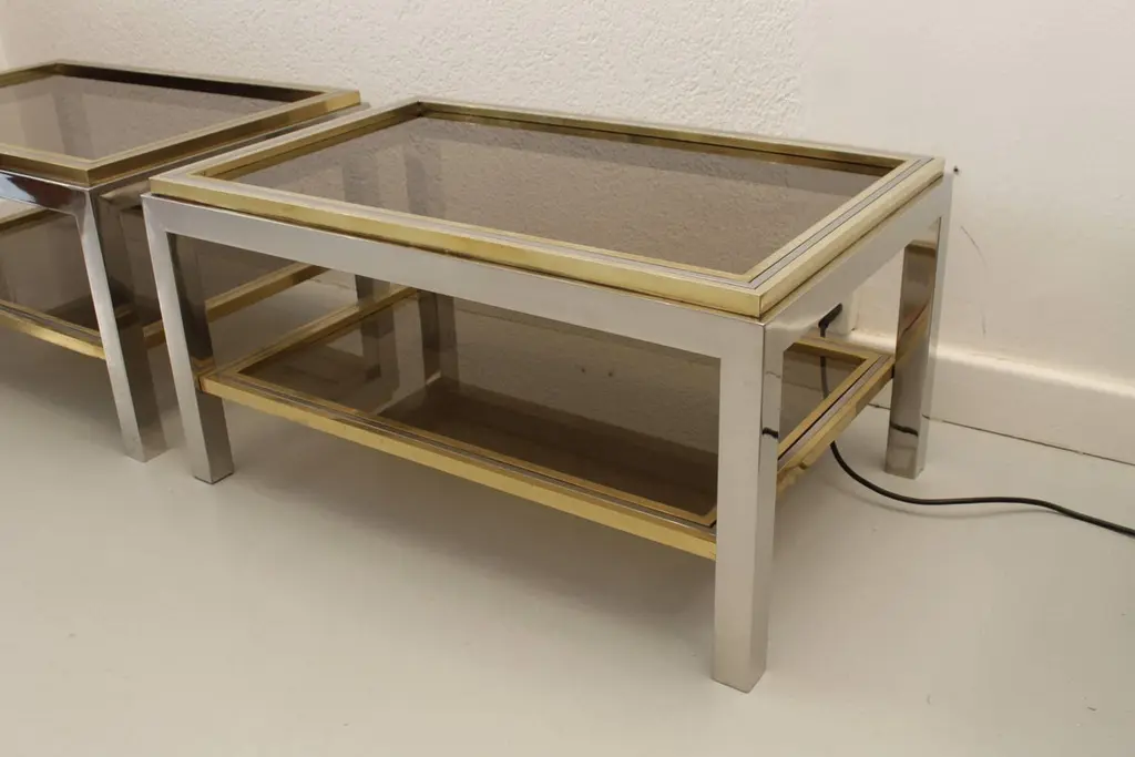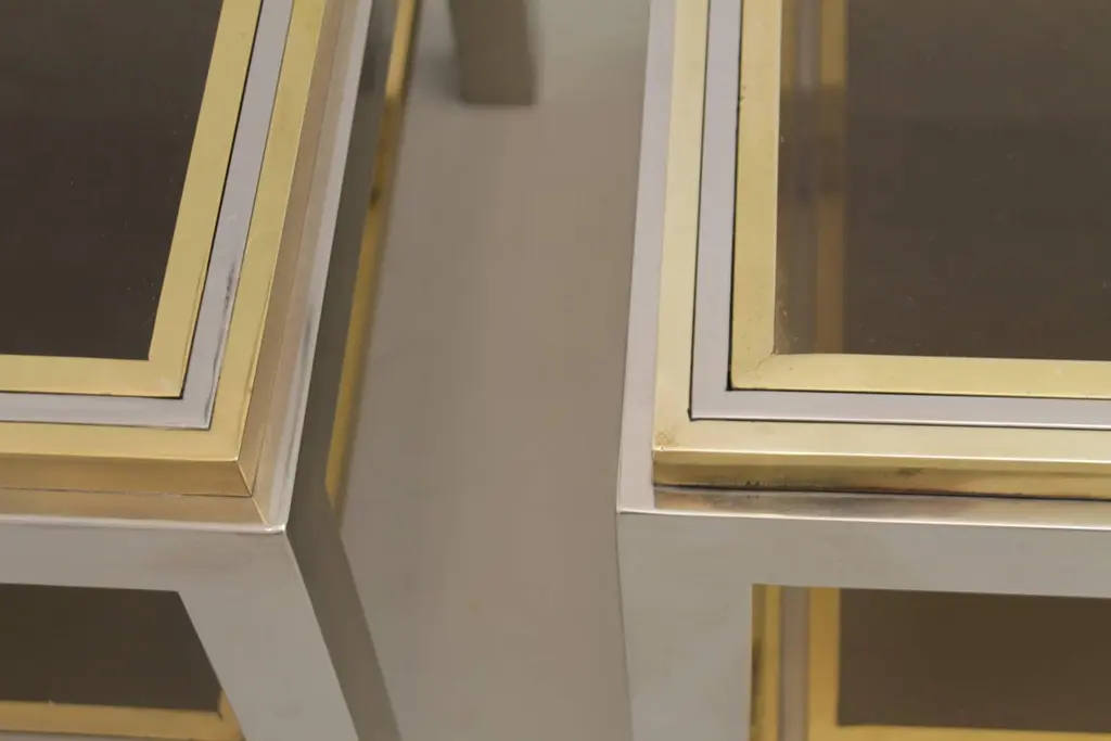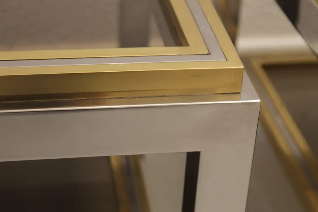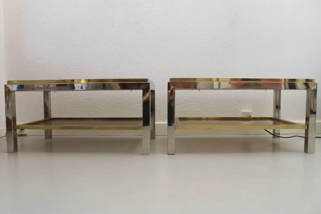 "Flaminia" chrome, brass and glass side tables by Willy RizzoVery good condition. Signed.3 pieces available.