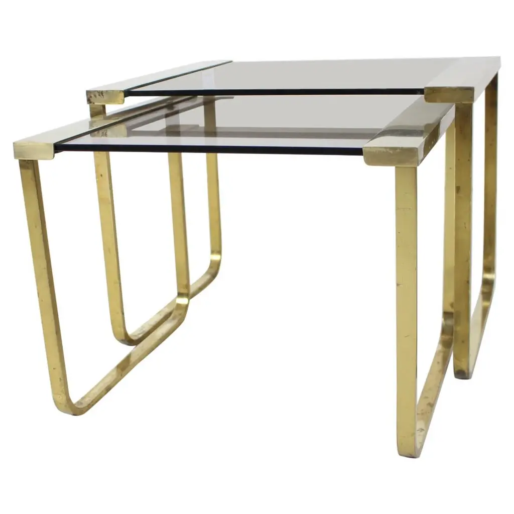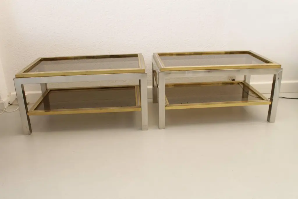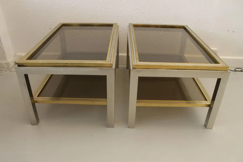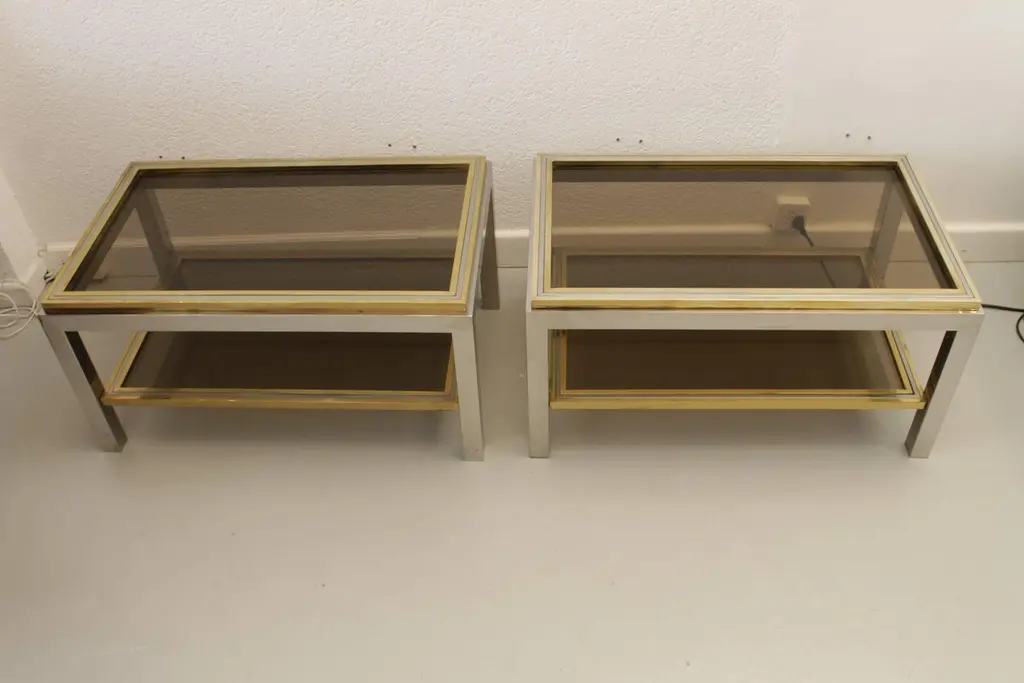 "Flaminia" chrome, brass and glass side tables by Willy RizzoVery good condition. Signed.3 pieces available.