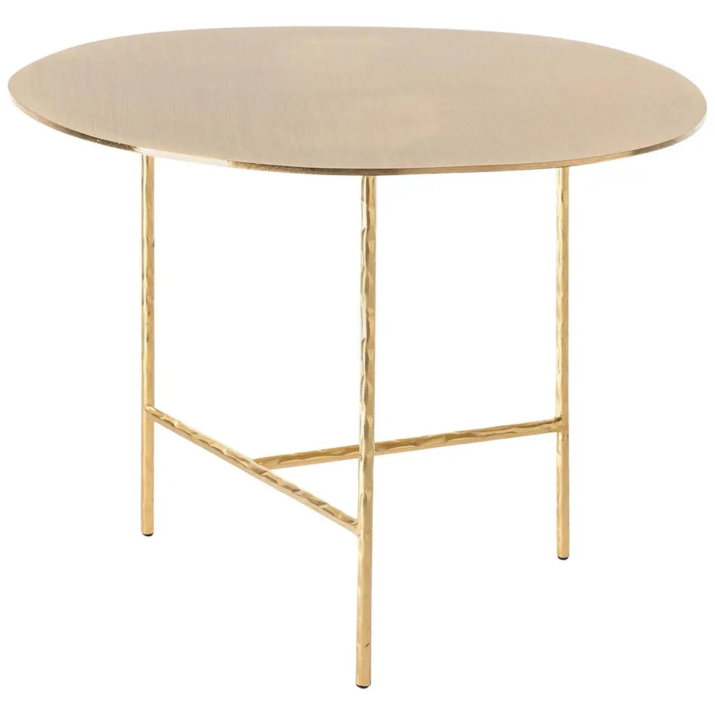 This gorgeous accent table is crfated from aluminum and finished in gold. Topped with a versatile white marble top.