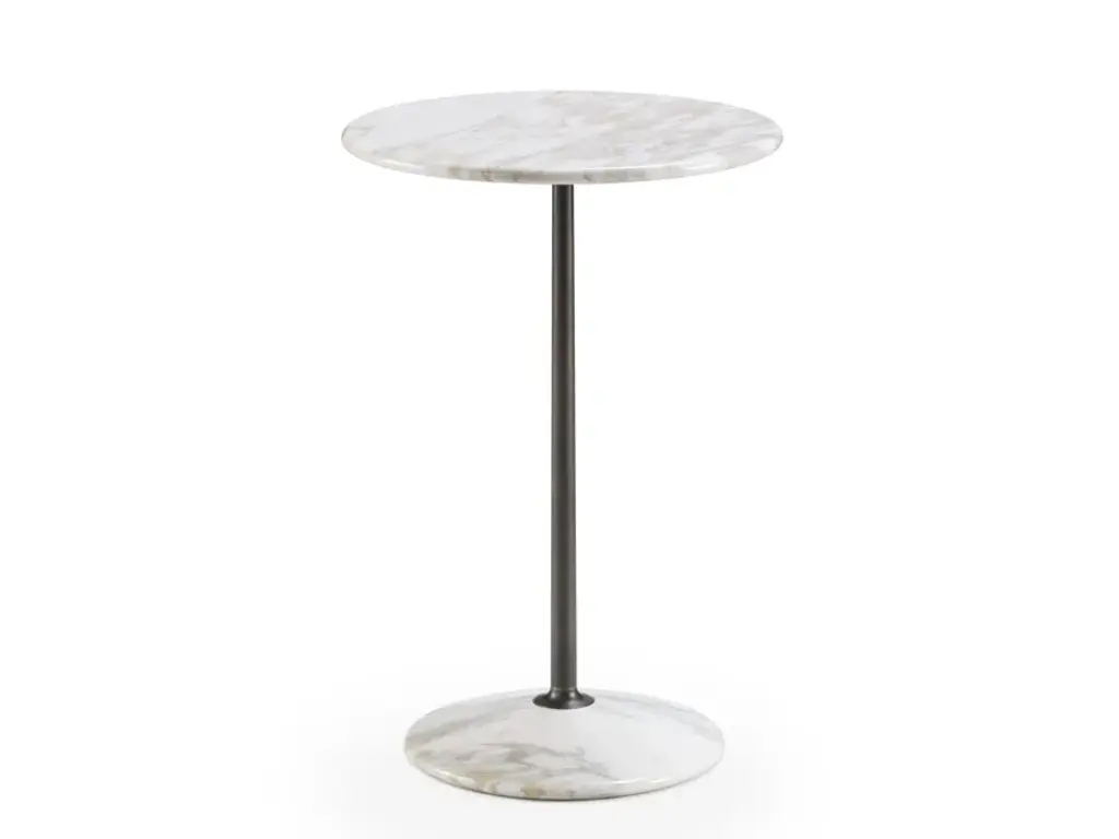 Layer in sophistication anywhere. A dramatically shaped base of antique marble supports slim iron piping and rounded tray-style tabletop - the perfect place to perch a drink or favorite book. 10"w. x 10"d. x 18.75"h. Solid marble, iron Assembly required Receives parcel delivery, ships in two boxes