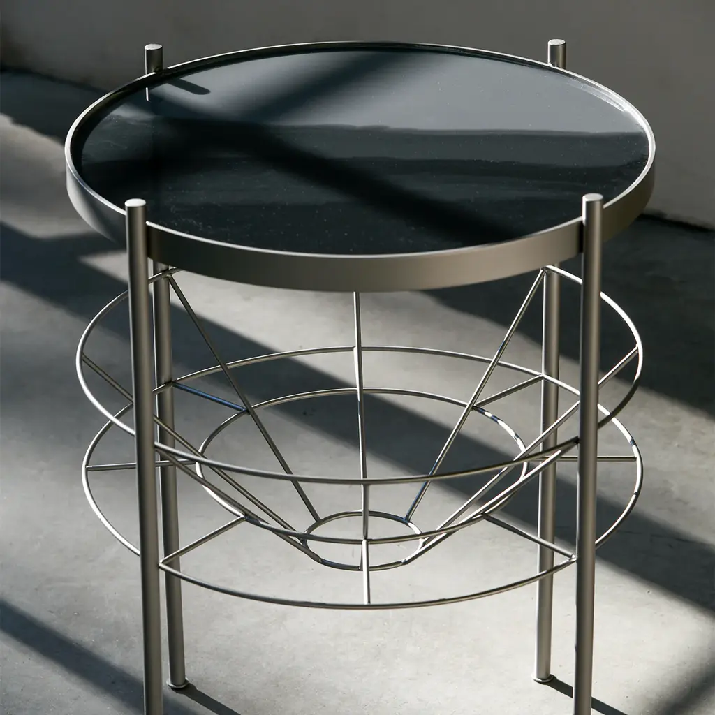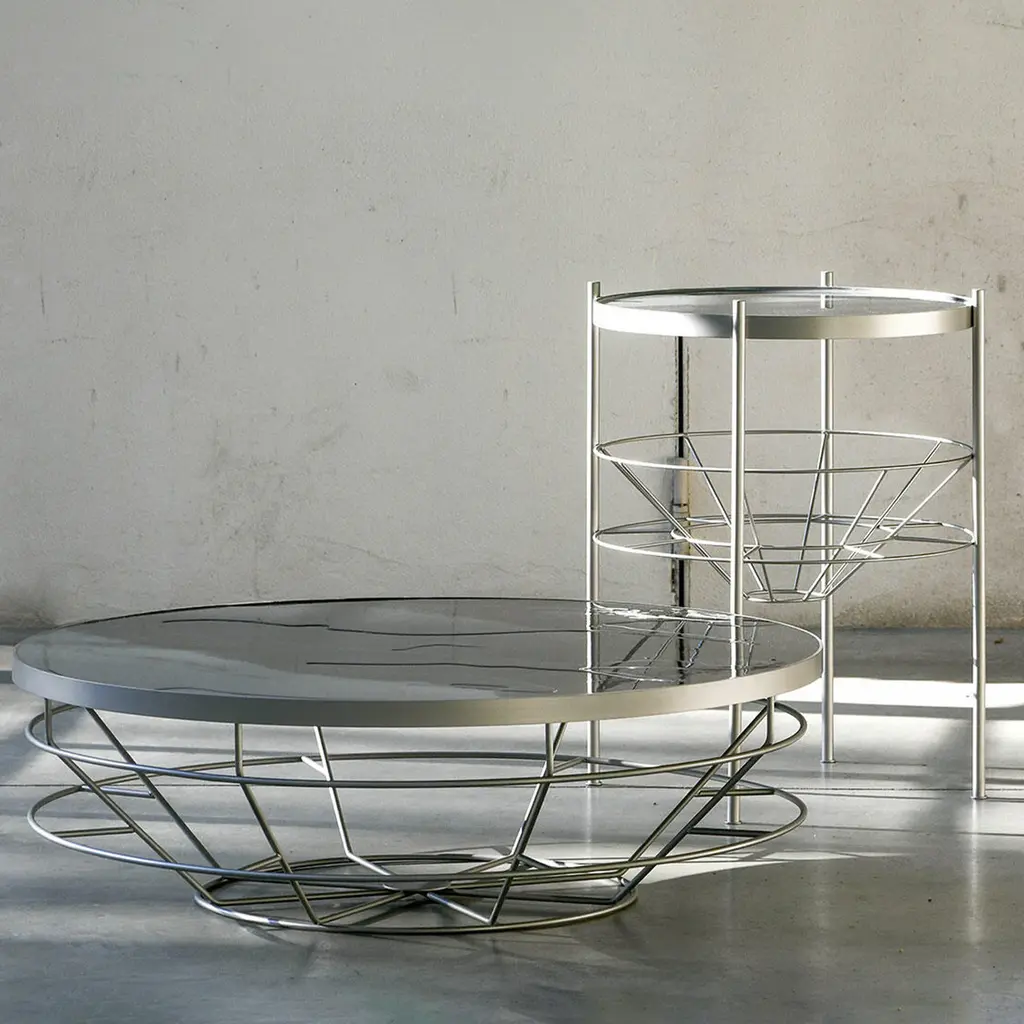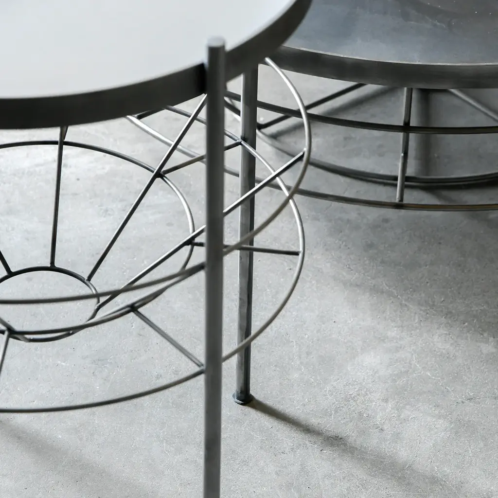 An extraordinary design from the Silo and Oils duo of coffee tables, this piece merges contemporary design and traditional craftsmanship in a sleek and clean shape. Handmade of steel, the visually striking base supports a round top fashioned of epoxy resin, spread by hand to obtain singular shades. Available in a shorter version, it is also customizable in shade and finish. Please refer to the Concierge for details.