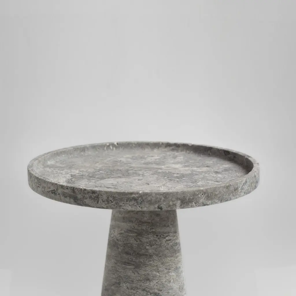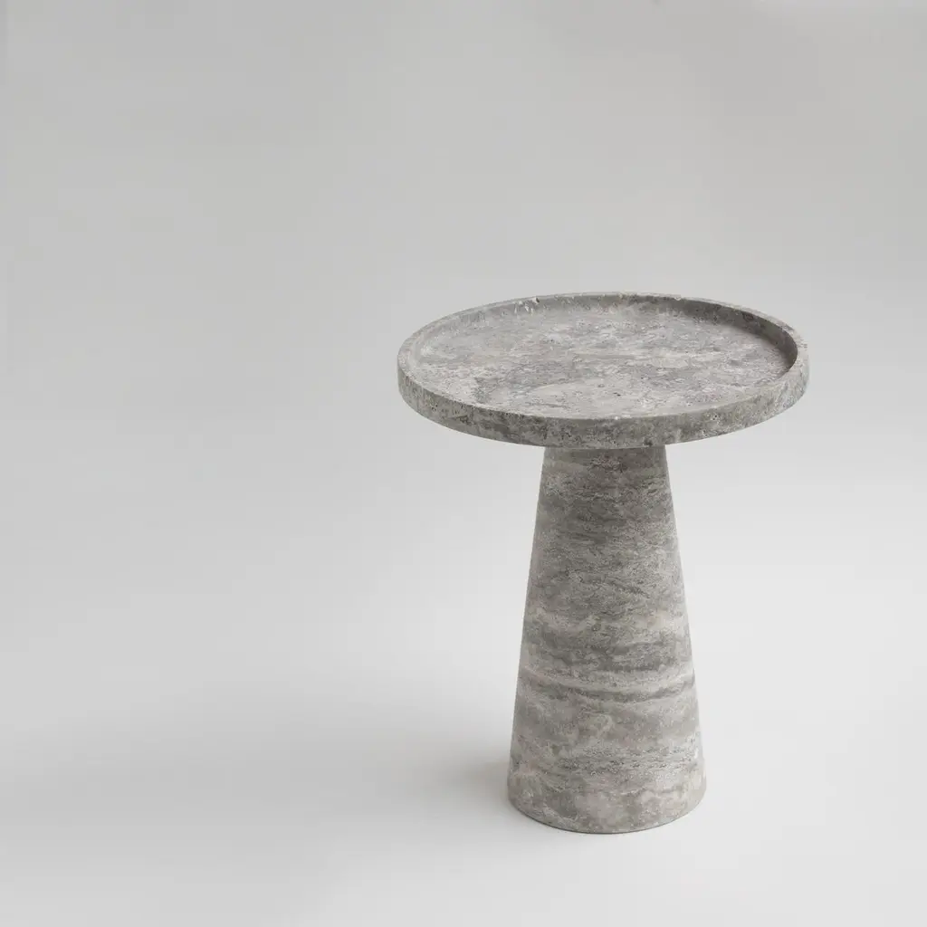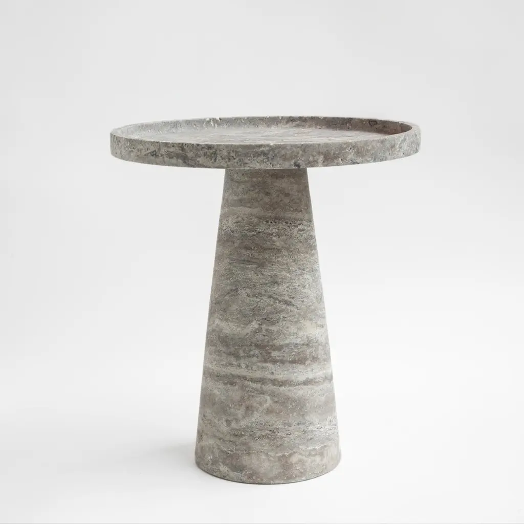 Add a touch of elegance to any room with this stunning Silver Travertine Side Table. The conical shape of this side table works with a variety of interior aesthetics from traditional to contemporary. Perfect for placing next to a sofa, chair or bed, this functional accent table gives you a surface for lamps, books, remote controls or your morning coffee.Crafted of durable stone.Features a conical shape that fits into any décor.Smooth, polished surface that's easy to clean.